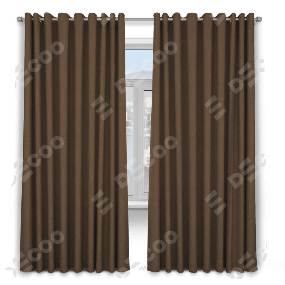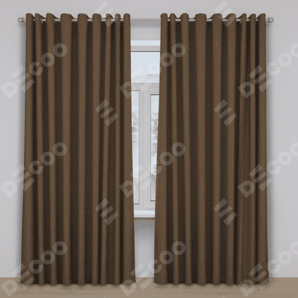 Комплект прямых штор, от производителя «Cortin», пошиты из ткани лён димаут тёмно-коричневый, артикул ткани 83030. Данная модель пошита на люверсах, комплектуется на выбор круглым карнизом и подходит для монтажа на стену. Прямые шторы на люверсах шьются по стандарту с коэффициентом 1/2 (на 100 см. ширины проёма 200 см. ширины ткани), отличительным преимуществом данной модели является простой способ монтажа. Достаточно повесить ее на трубу и штора готова!