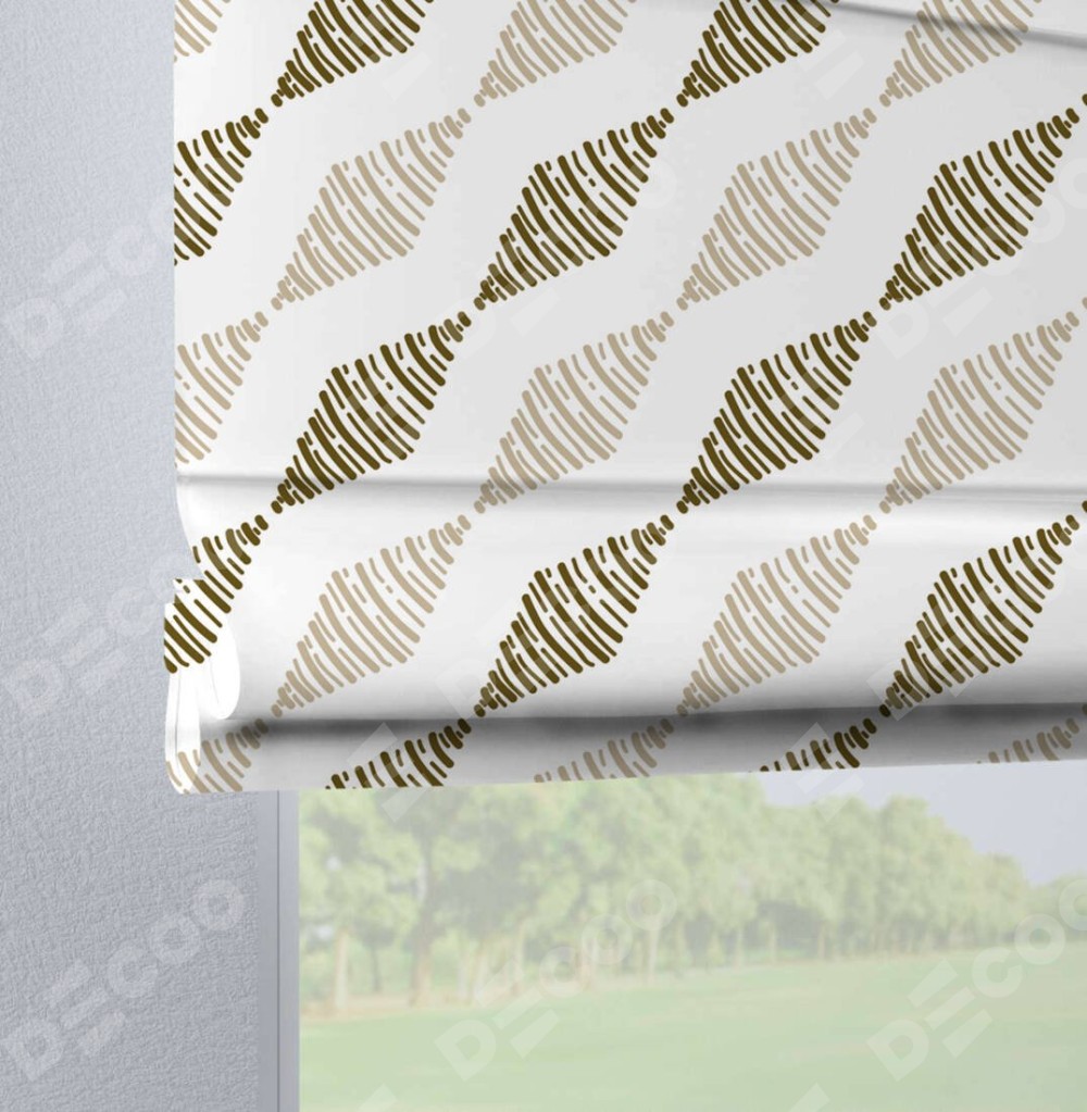 Римская штора «Кортин» на петлях «Диагональные ромбы» отлично подойдёт для интерьера: в спальню, в кухню и в гостиную.