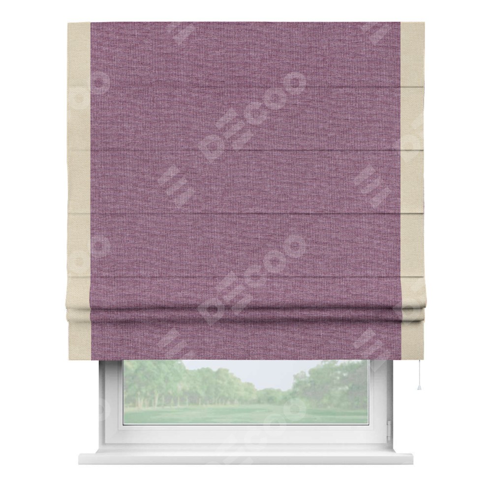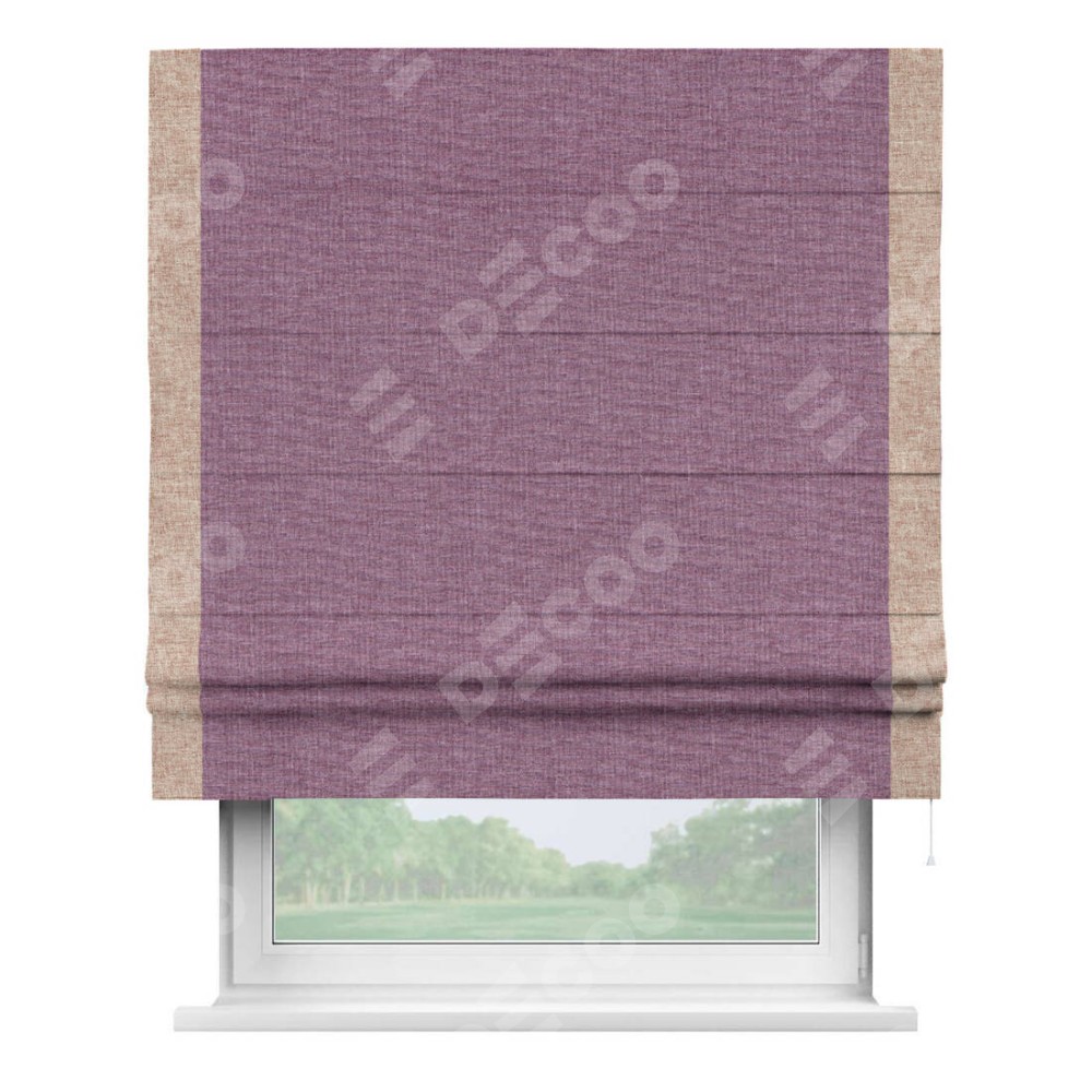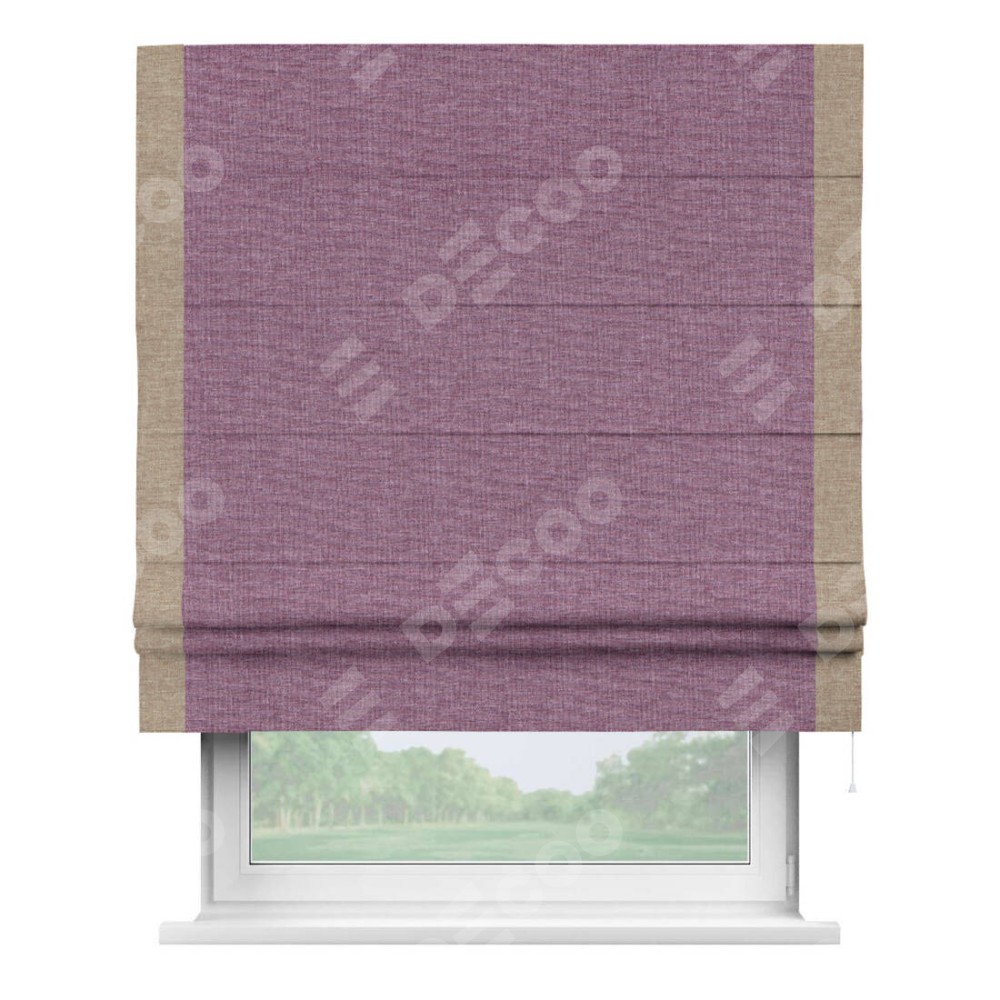 Римская штора «Кортин» с кантом Стрим Дуо, для проема, ткань лён кашемир сиреневый