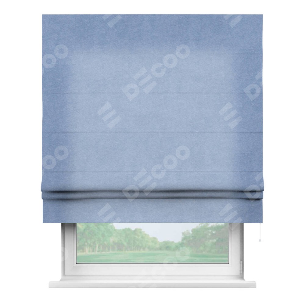 Римская штора «Кортин» для проема, ткань вельвет васильковый