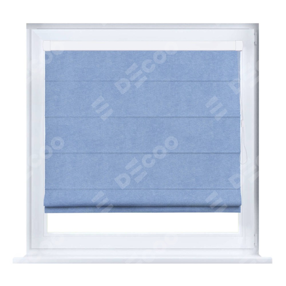 Римская штора производителя «Cortin», устанавливается на створку окна, пошита из ткани вельвет васильковый, артикул 33799. Штора шьётся по индивидуальным размерам, для данного типа римской шторы возможная ширина от 35 до 150 см., высота до 250 см.