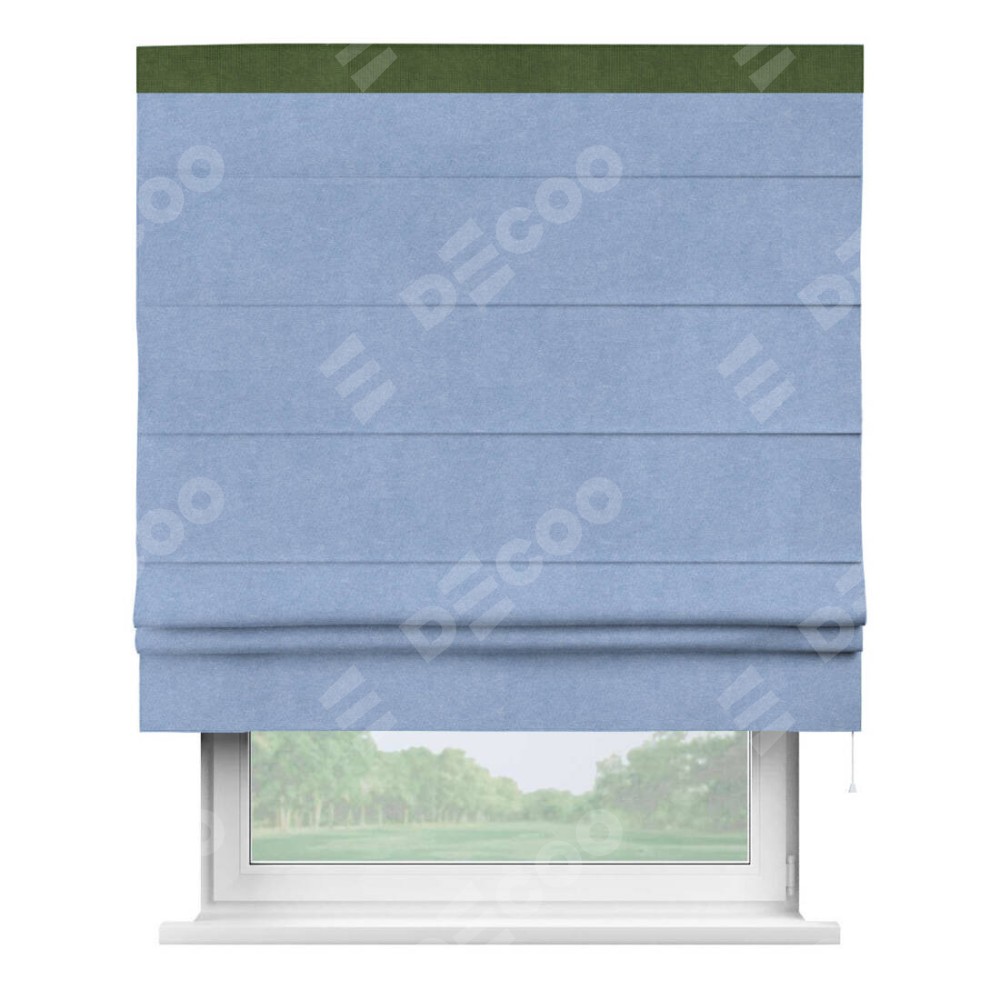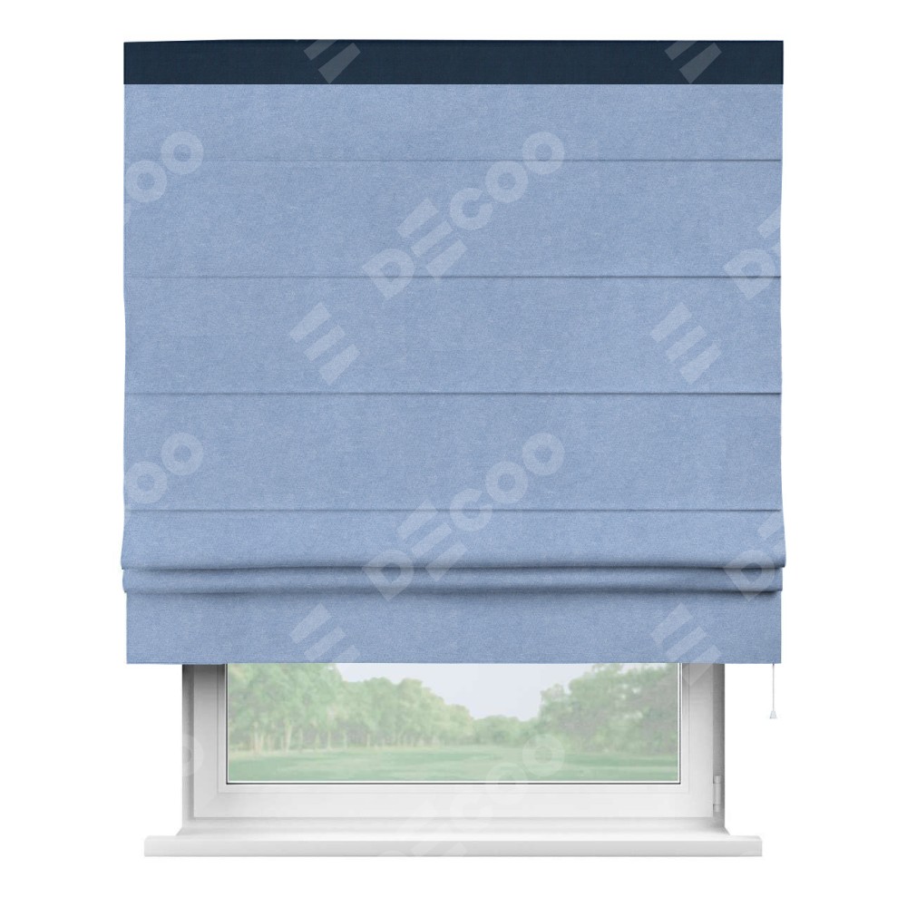 Римская штора «Кортин» для проема, вельвет васильковый с кантом Кинг