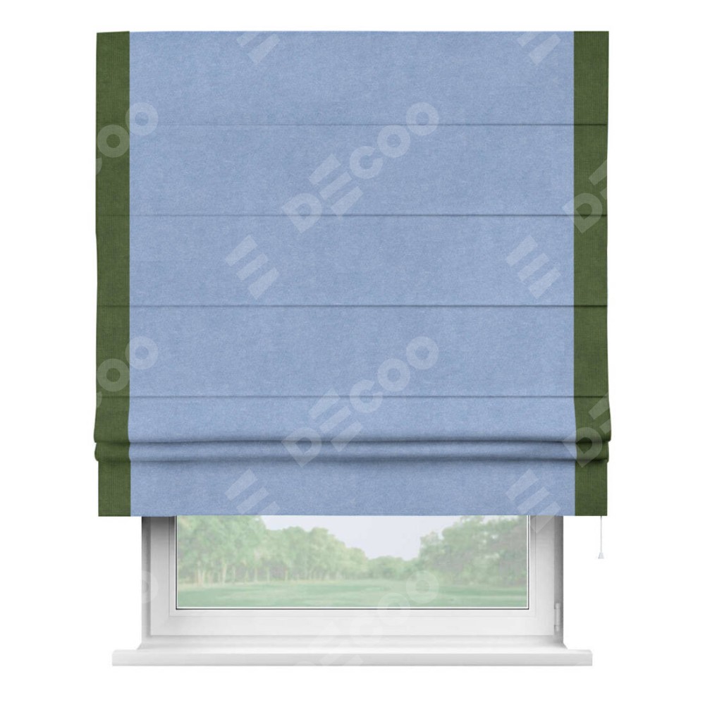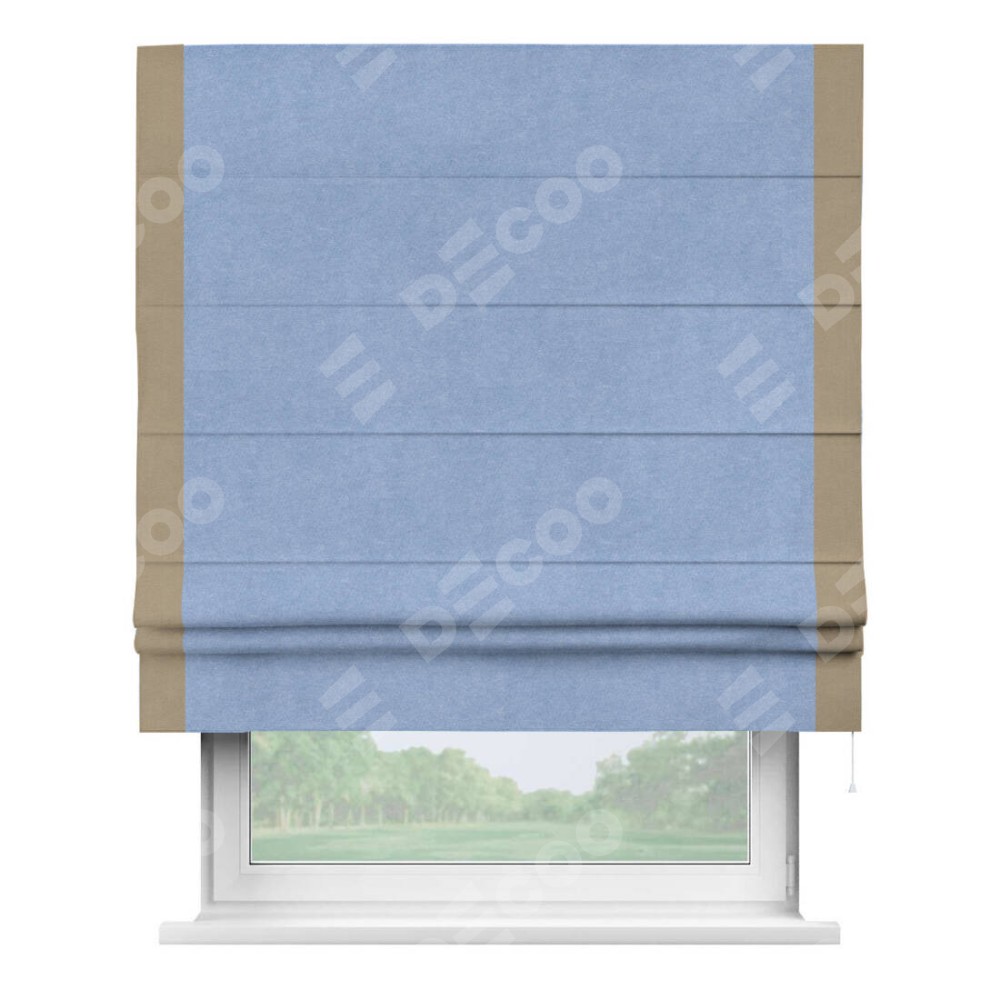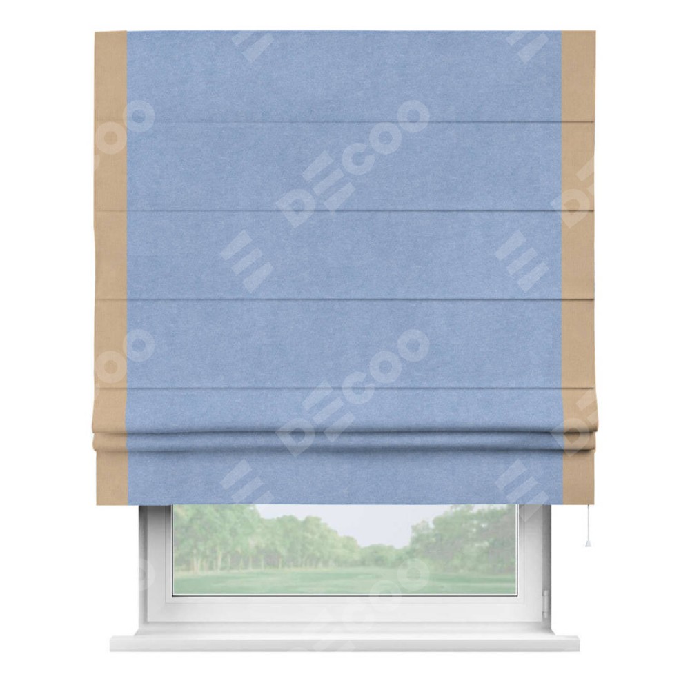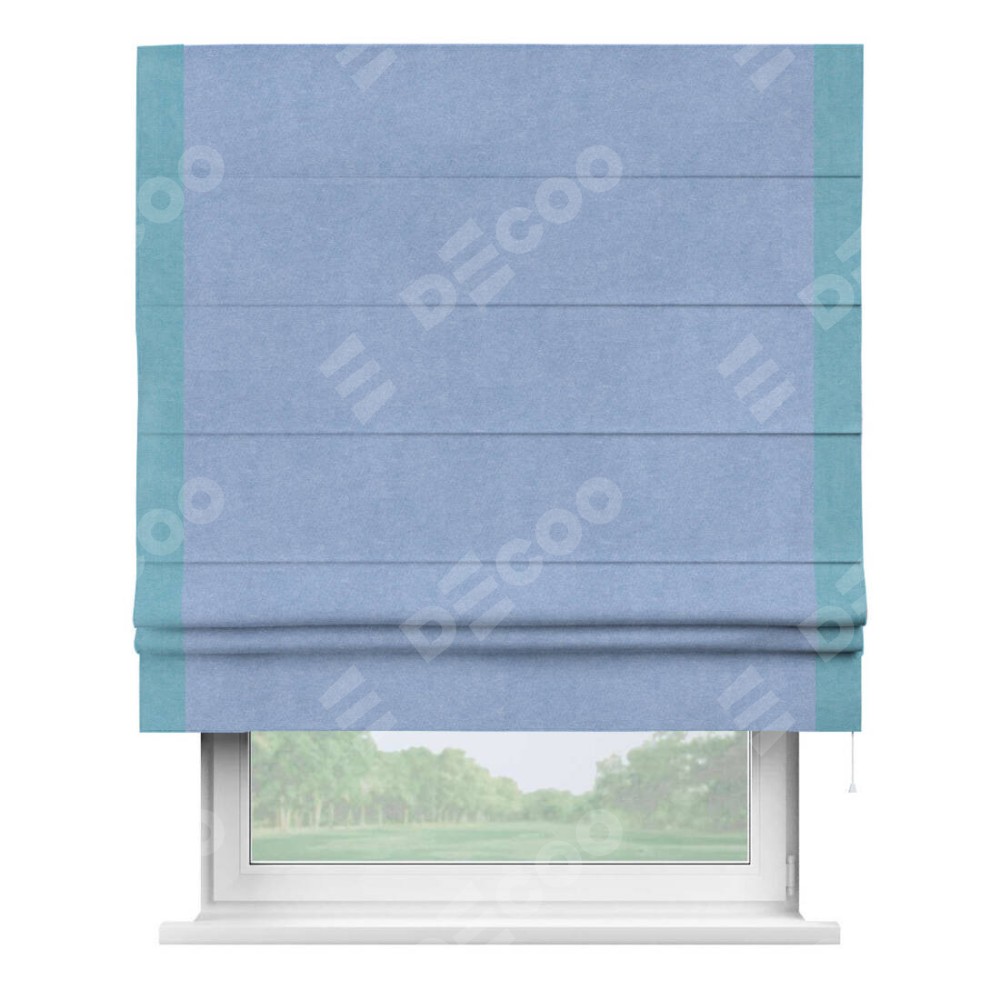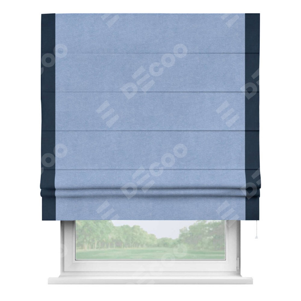Римская штора «Кортин» для проема, вельвет васильковый с кантом Стрим Дуо