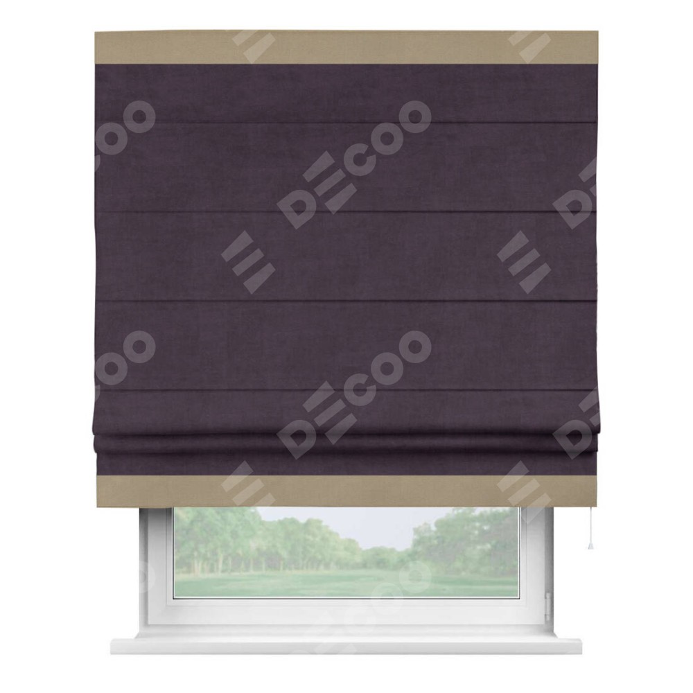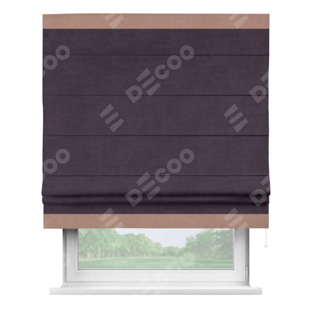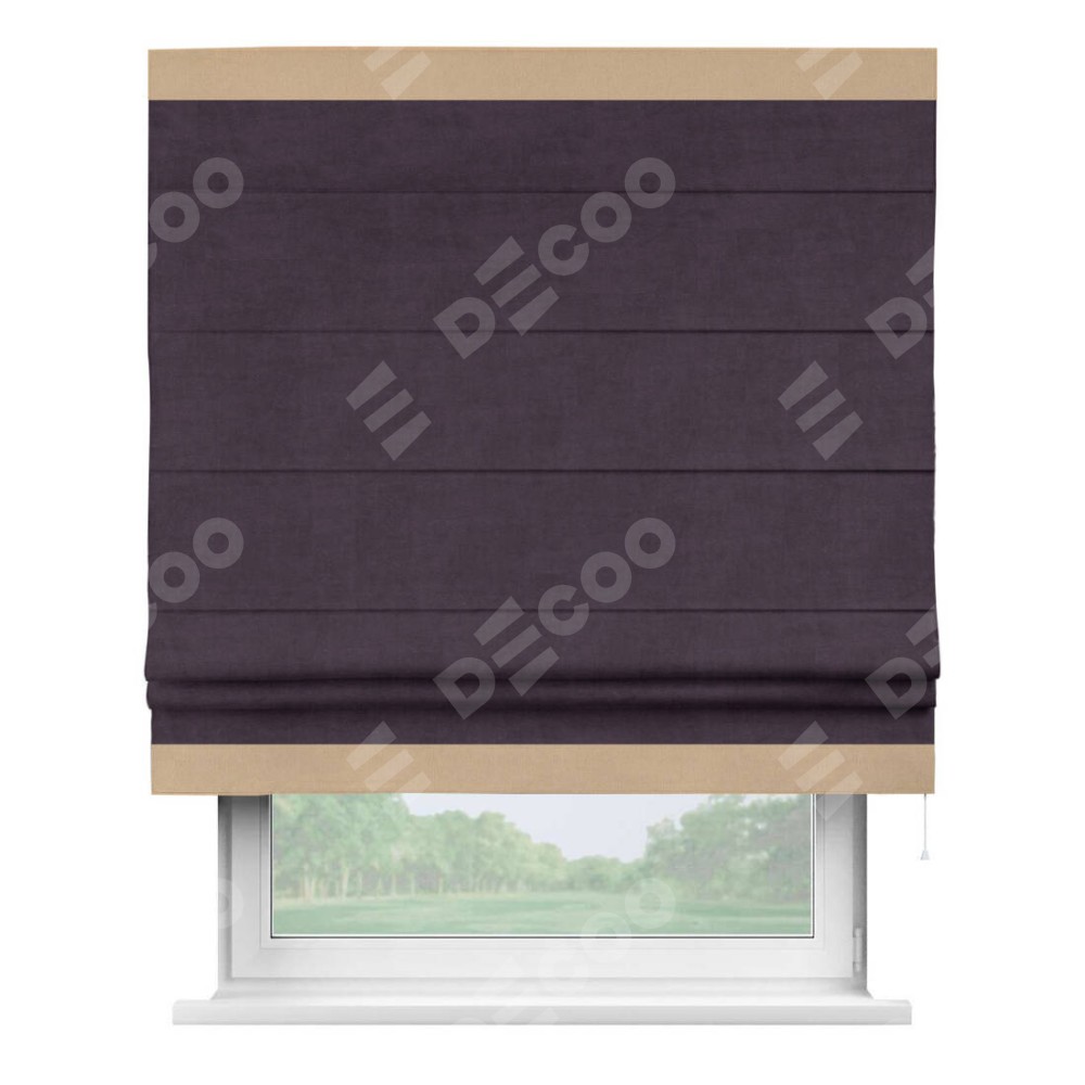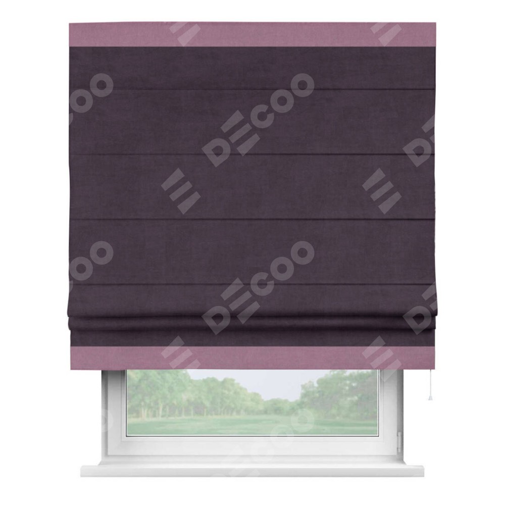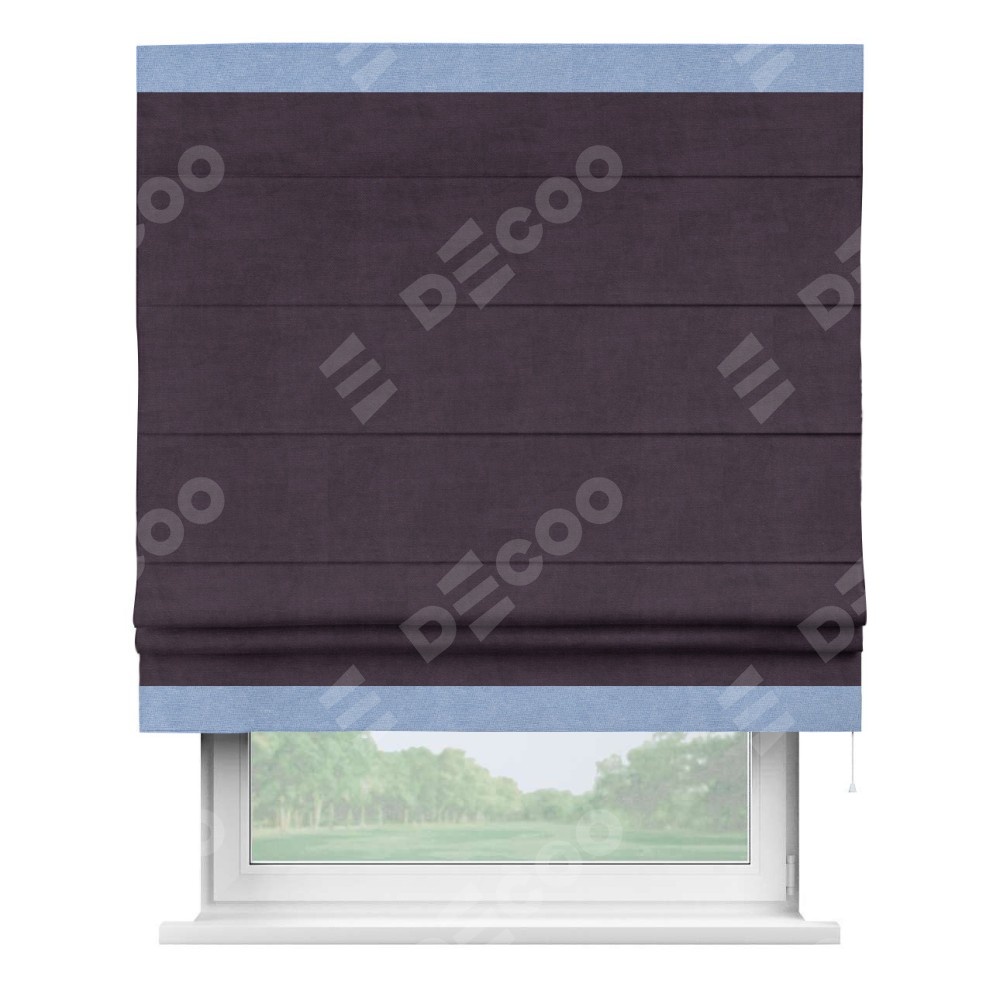Римская штора «Кортин» для проема, вельвет тёмно-фиолетовый с кантом Горизонт