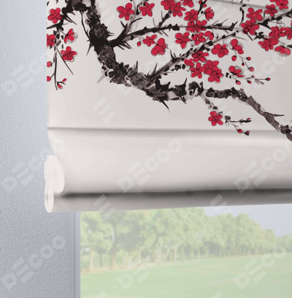 Римская штора на петлях «Цветущая сакура» отлично подойдёт для интерьера: на балкон, в спальню и в гостиную.