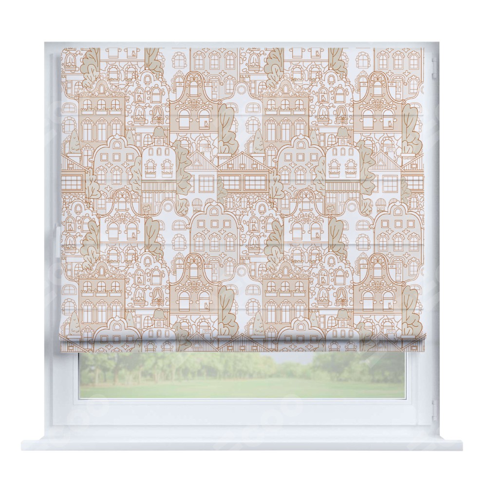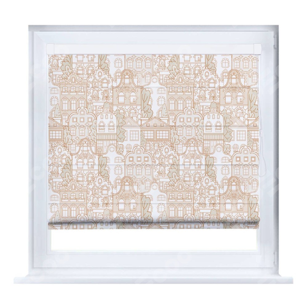 Римская штора «Кортин» на створку «Милый городок» предоставлена в следующих характеристиках: