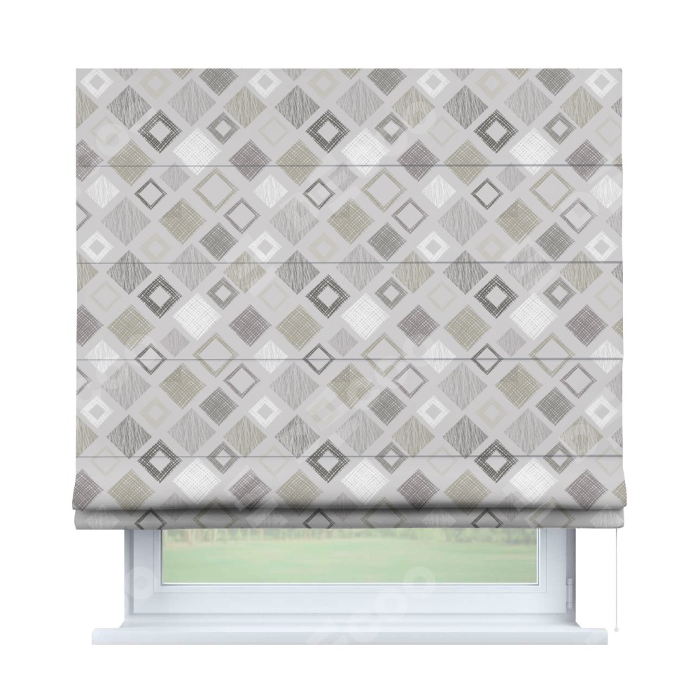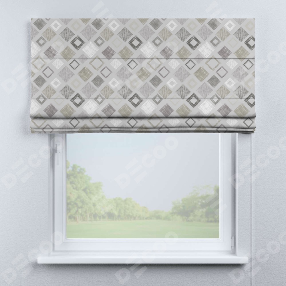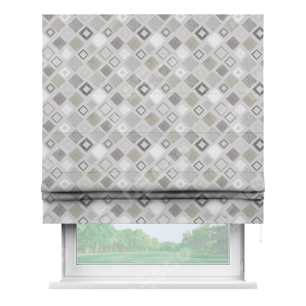 Классическая римская штора производителя «Cortin», пошита из ткани блэкаут с нанесением сублимационной печати «Квадро». Имеет универсальный механизм и подходит для монтажа: на потолок, на стену и в нишу.