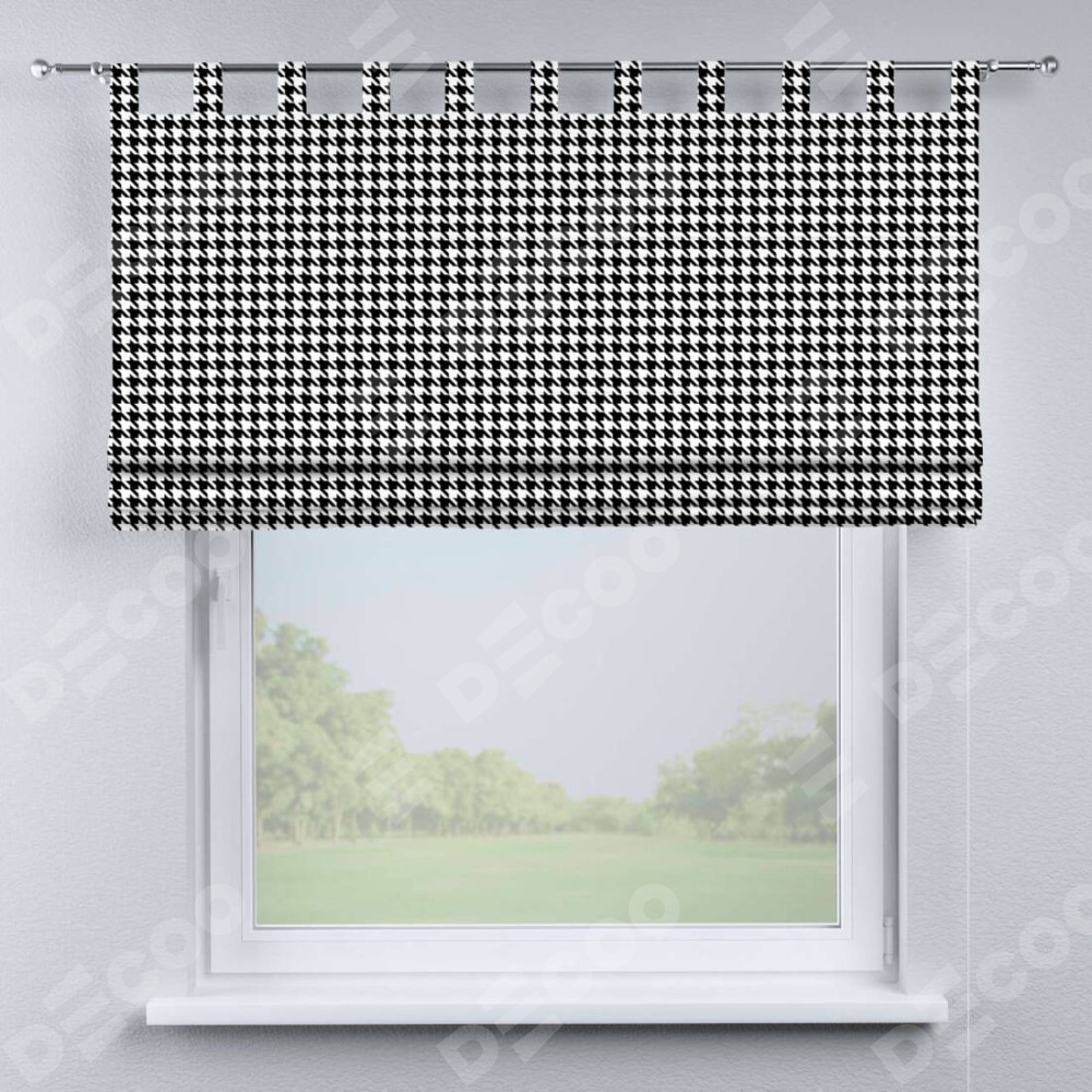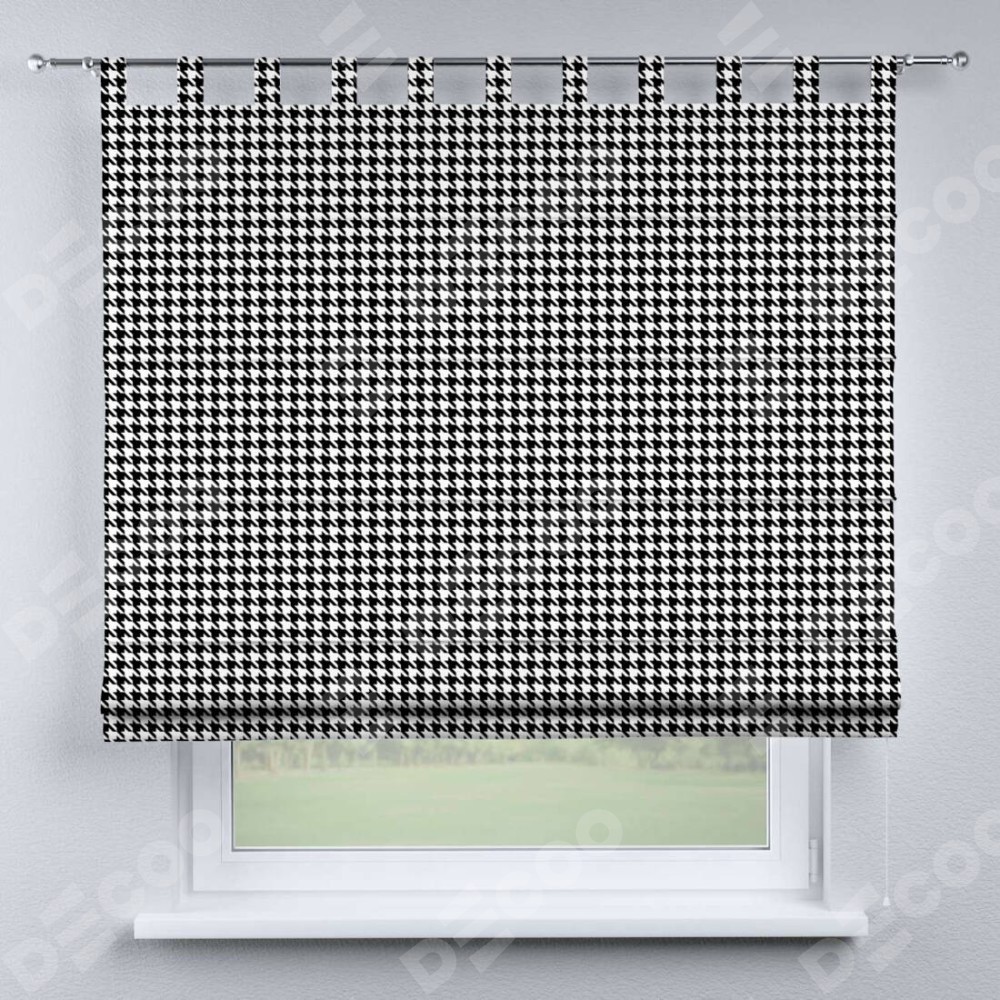 Римская штора производителя «Cortin», используется для проёма, пошита из ткани блэкаут с нанесением сублимационной печати «Гусиные лапки» черно-белый». Данная модель пошита на петлях, комплектуется на выбор круглым карнизом и подходит для монтажа на стену. Римская штора на петлях имеет простую систему регулировки высоты, отличительным преимуществом данной модели является простой способ монтажа. Достаточно повесить ее на трубу и штора готова!