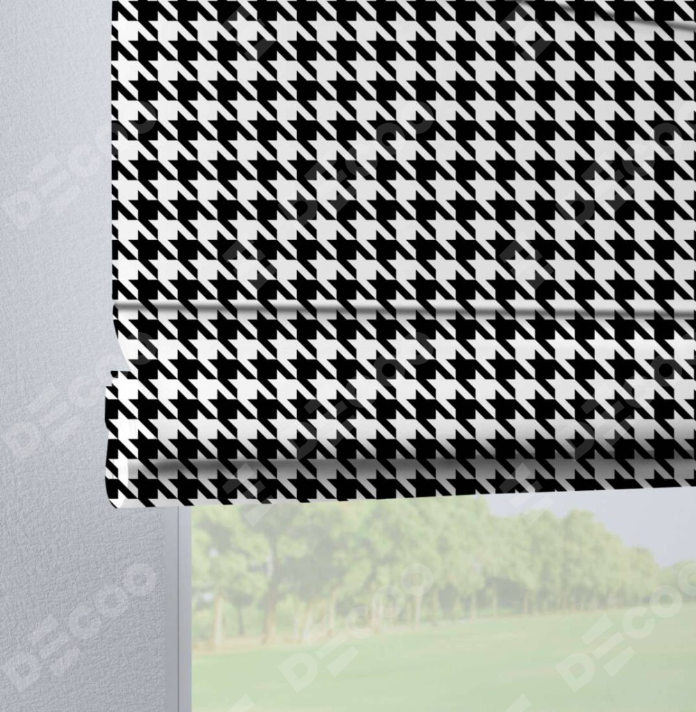 Римская штора на петлях «Гусиные лапки» черно-белый» отлично подойдёт для интерьера: в спальню, на балкон и в кухню.
