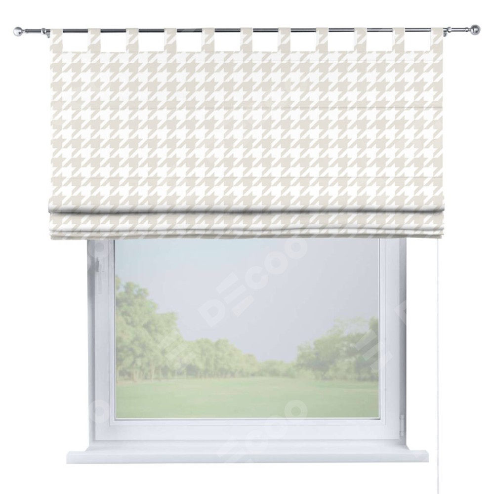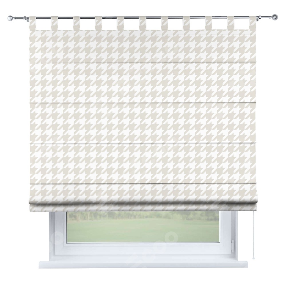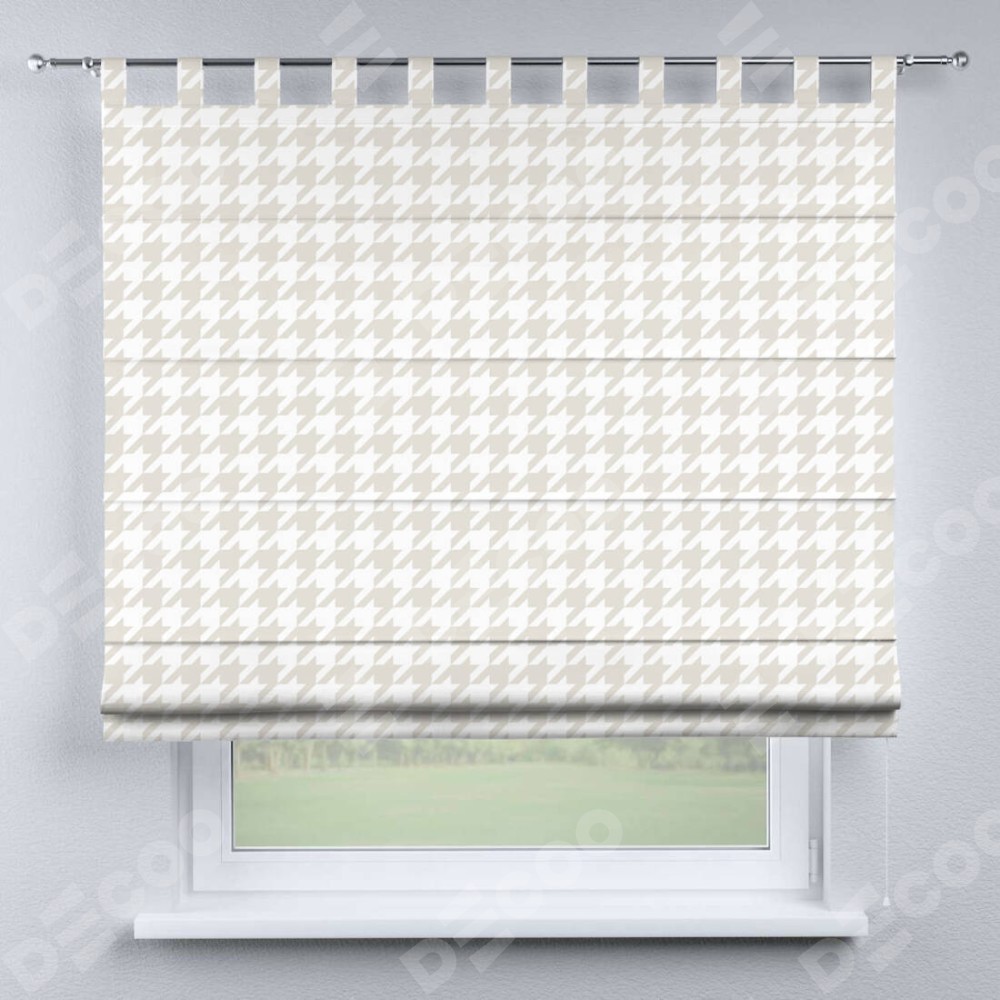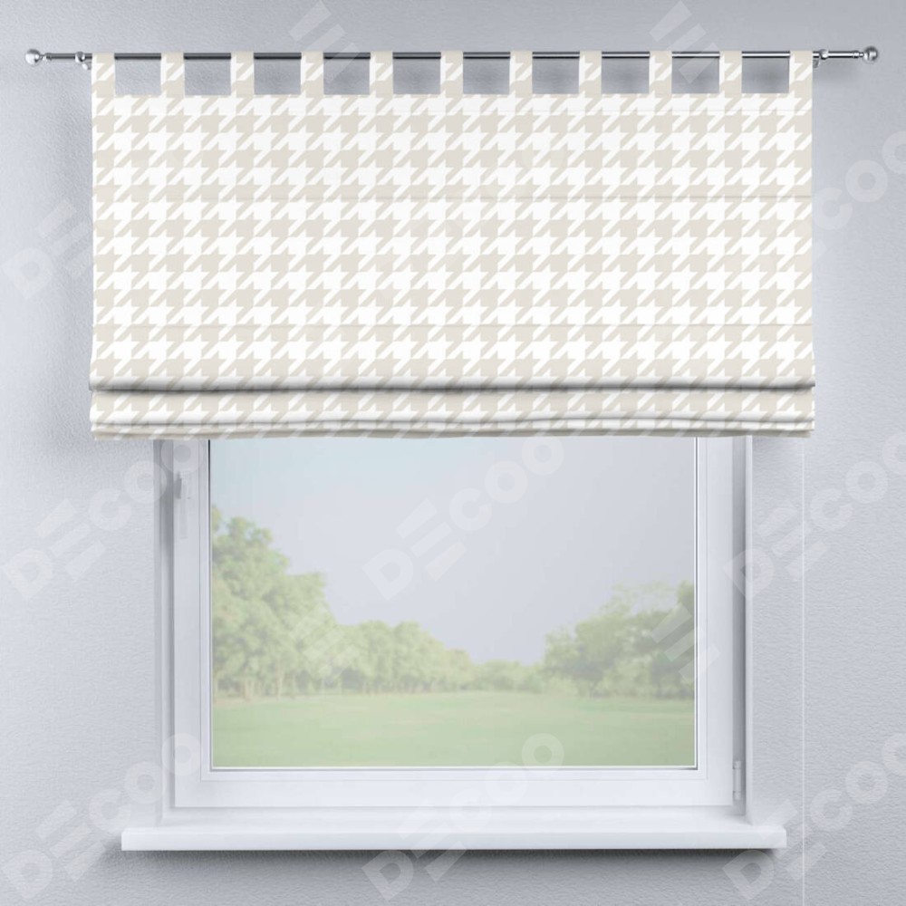 Римская штора производителя «Cortin», используется для проёма, пошита из ткани блэкаут с нанесением сублимационной печати «Гусиные лапки» молочный». Данная модель пошита на петлях, комплектуется на выбор круглым карнизом и подходит для монтажа на стену. Римская штора на петлях имеет простую систему регулировки высоты, отличительным преимуществом данной модели является простой способ монтажа. Достаточно повесить ее на трубу и штора готова!