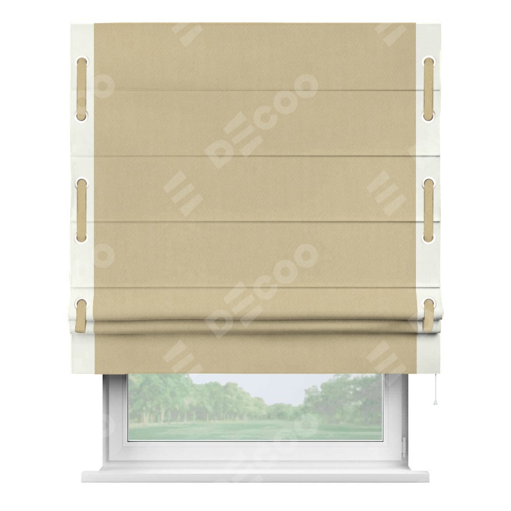 Римская штора «Кортин» для проема, канвас бежевый, с кантом Стрим Дуо (люверсы с пояском)