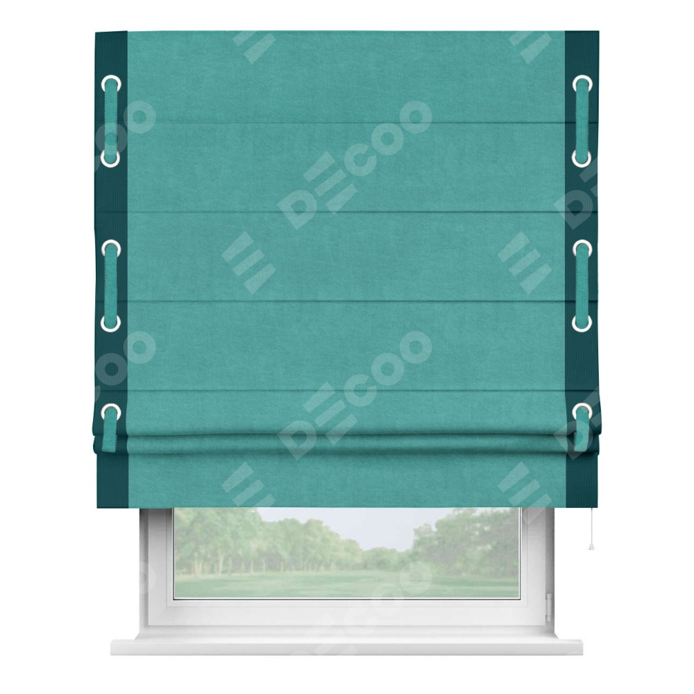 Римская штора «Кортин» для проема, канвас бирюзовый, с кантом Стрим Дуо (люверсы с пояском)