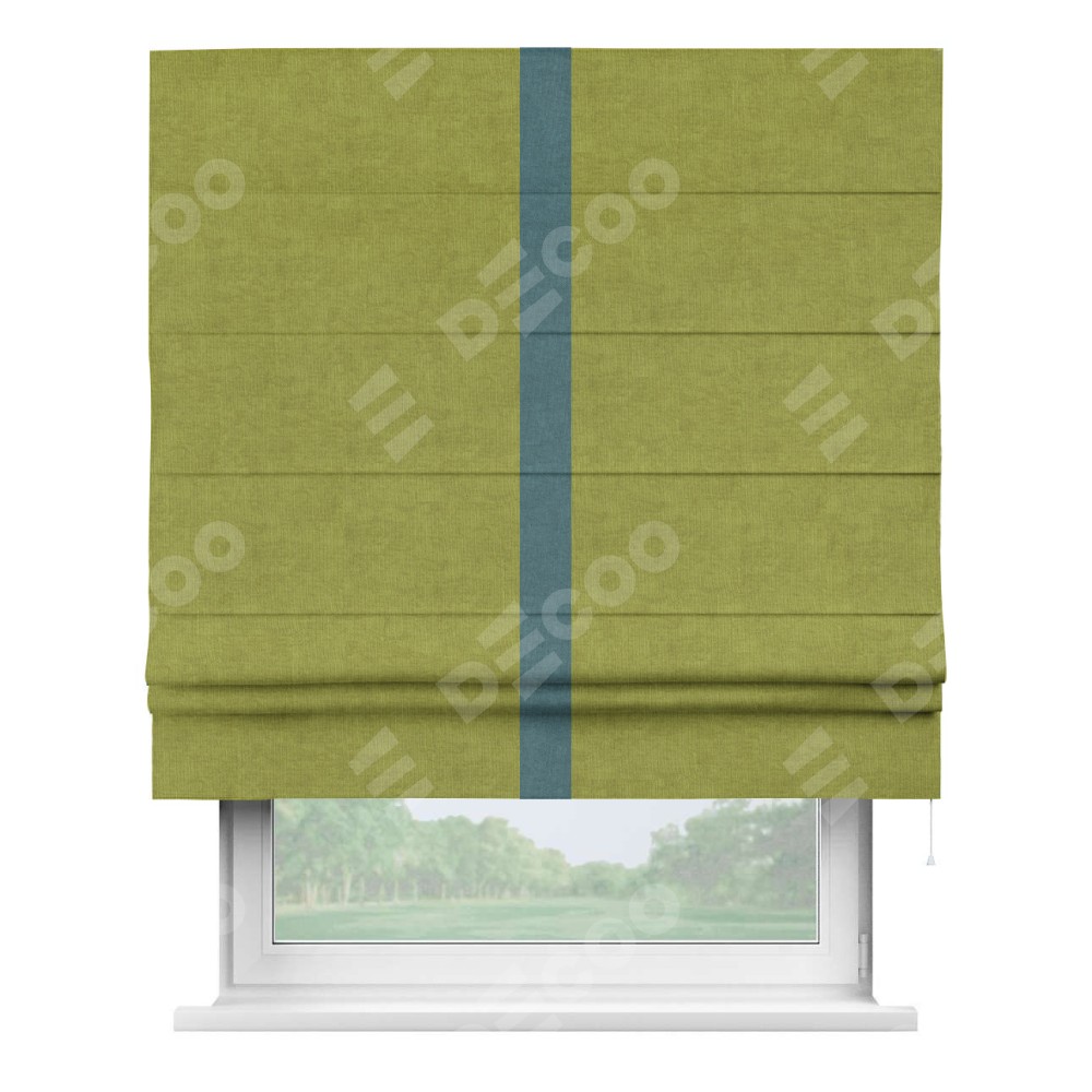 Римская штора «Кортин» для проема, канвас зелёное яблоко, с кантом Хайвэй