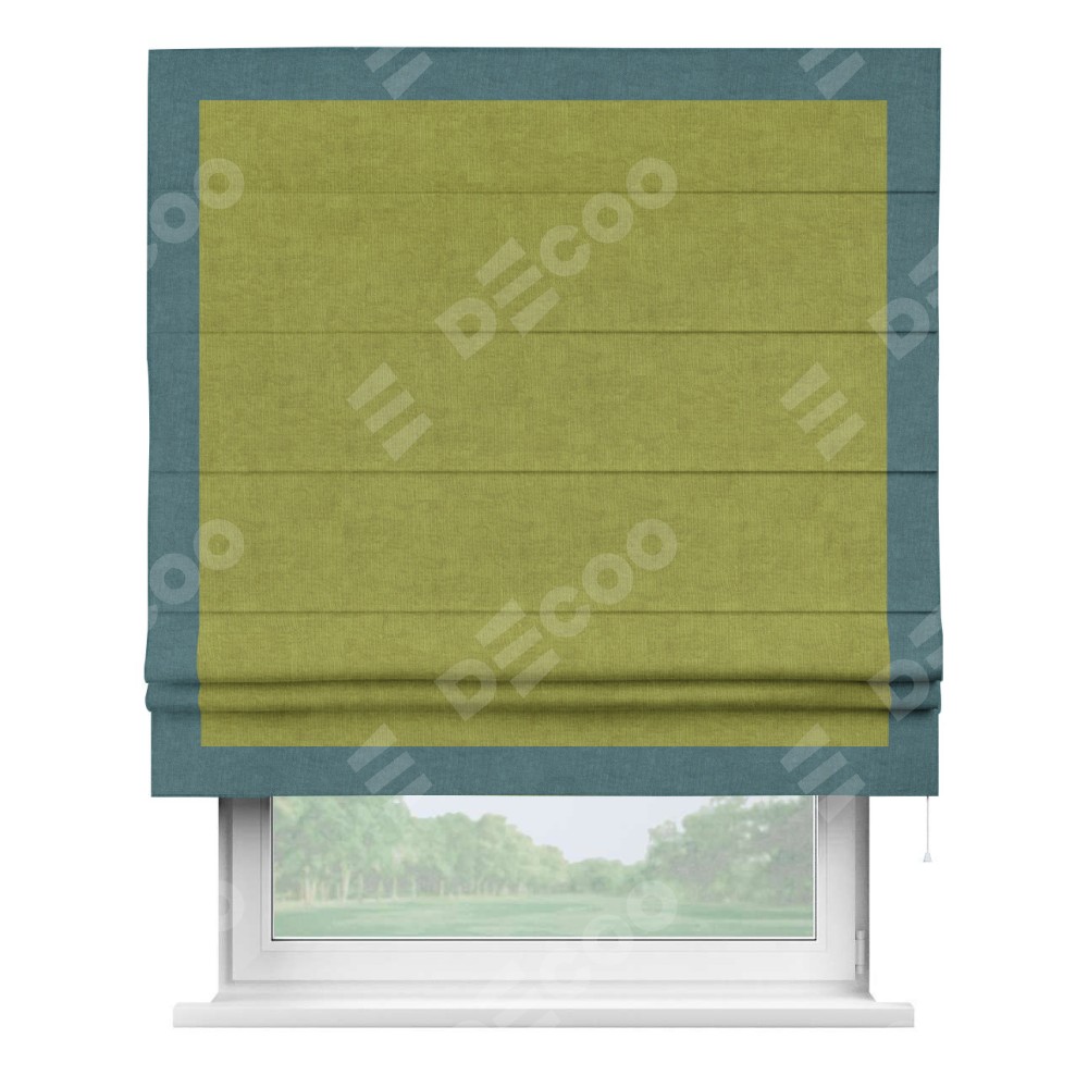 Римская штора «Кортин» для проема, канвас зелёное яблоко, с кантом Чесс