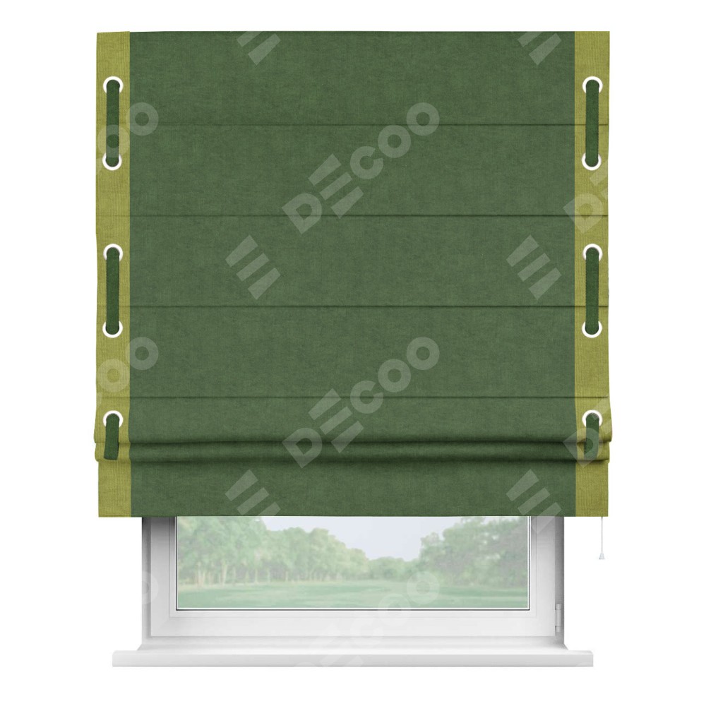 Римская штора «Кортин» для проема, канвас зелёный, с кантом Стрим Дуо (люверсы с пояском)