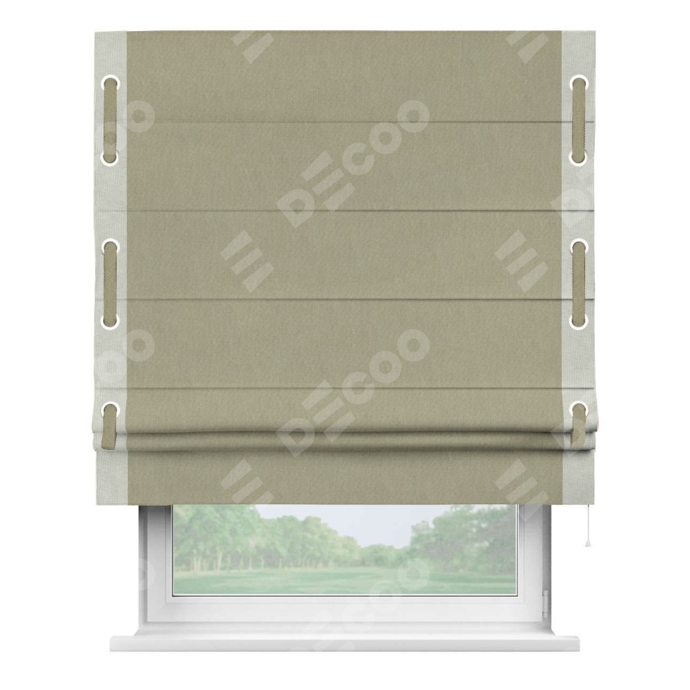 Римская штора «Кортин» для проема, канвас латте, с кантом Стрим Дуо (люверсы с пояском)