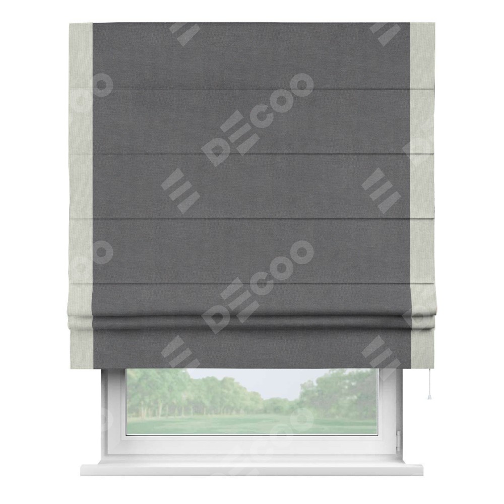 Римская штора «Кортин» для проема, канвас мокрый асфальт, с кантом Стрим Дуо