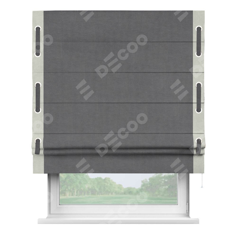Римская штора «Кортин» для проема, канвас мокрый асфальт, с кантом Стрим Дуо (люверсы с пояском)