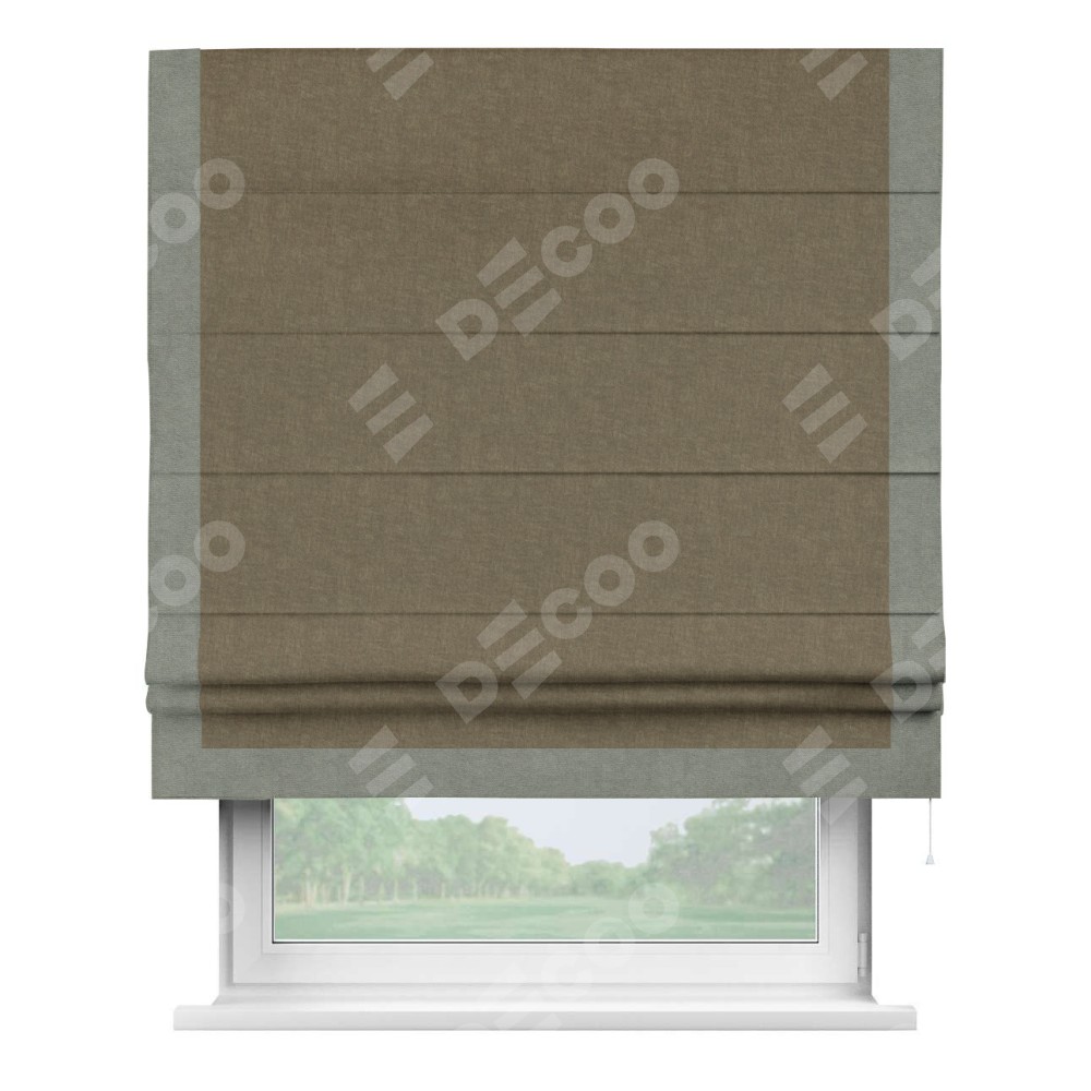 Римская штора «Кортин» для проема, канвас молочный шоколад, с кантом Виктория