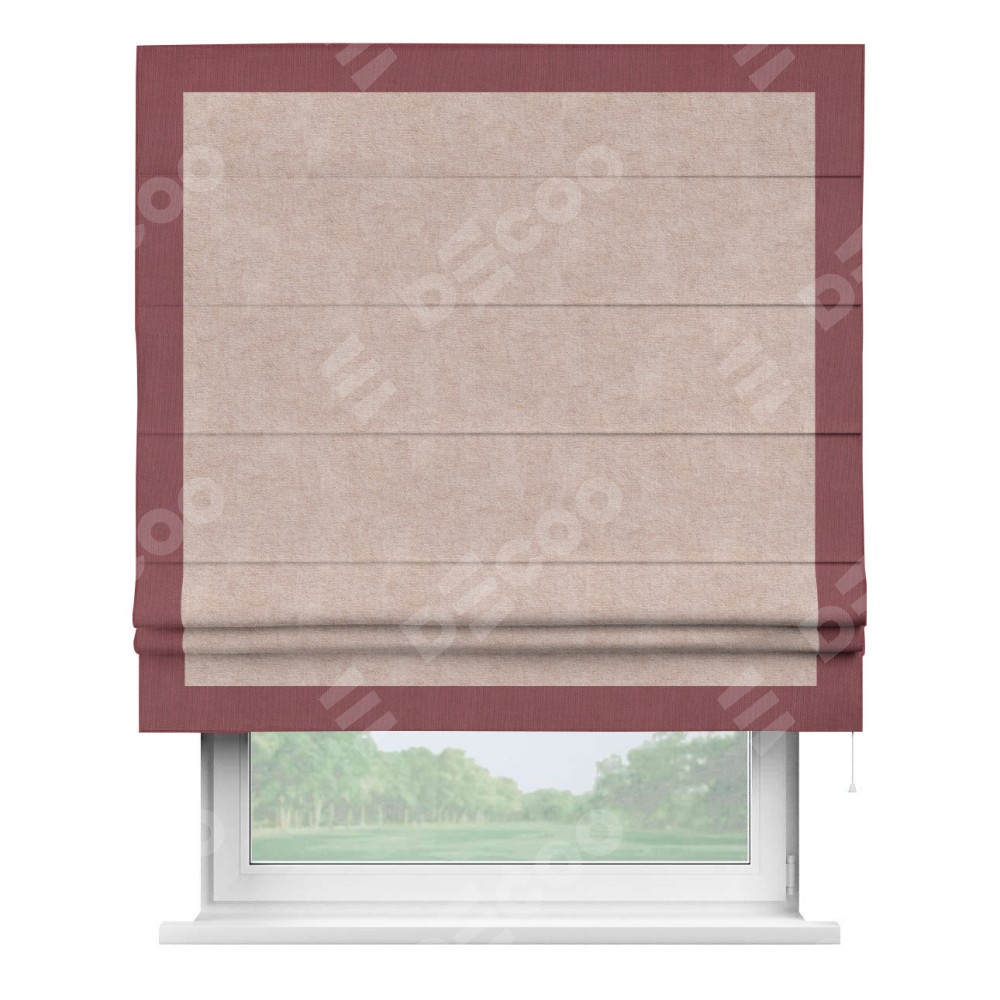 Римская штора «Кортин» для проема, канвас пудровый, с кантом Чесс