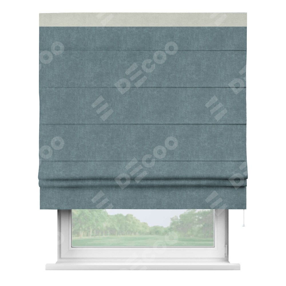 Римская штора «Кортин» для проема, канвас серо-голубой, с кантом Кинг представлена к заказу по индивидуальным размерам. Производственный артикул: 27950. будет зависеть от заданных параметров и начинается от 2 945 руб. В интернет-магазине Decoo есть возможность выбрать товар в любых размерных вариациях.