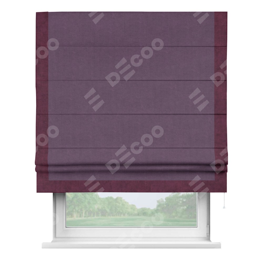 Римская штора «Кортин» для проема, канвас сиреневый, с кантом Виктория