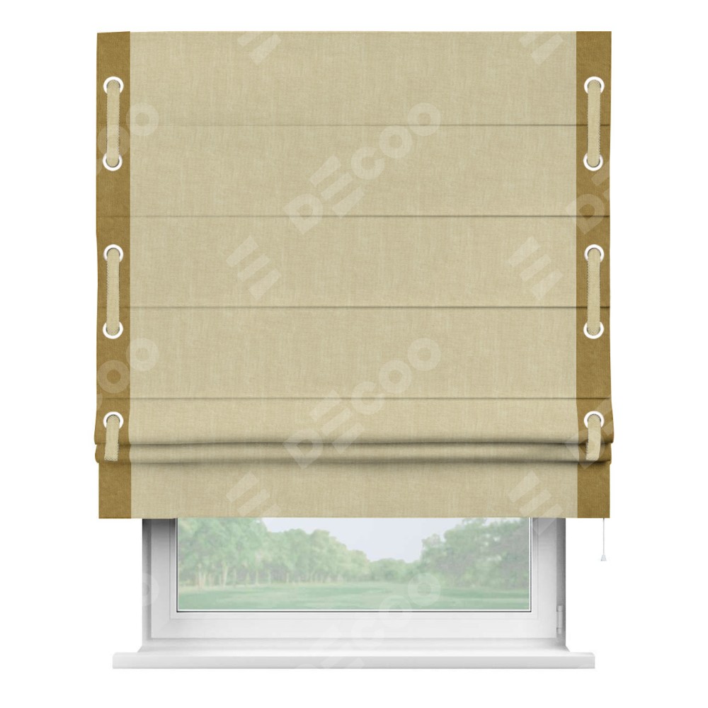 Римская штора «Кортин» для проема, канвас тёмно-бежевый, с кантом Стрим Дуо (люверсы с пояском)