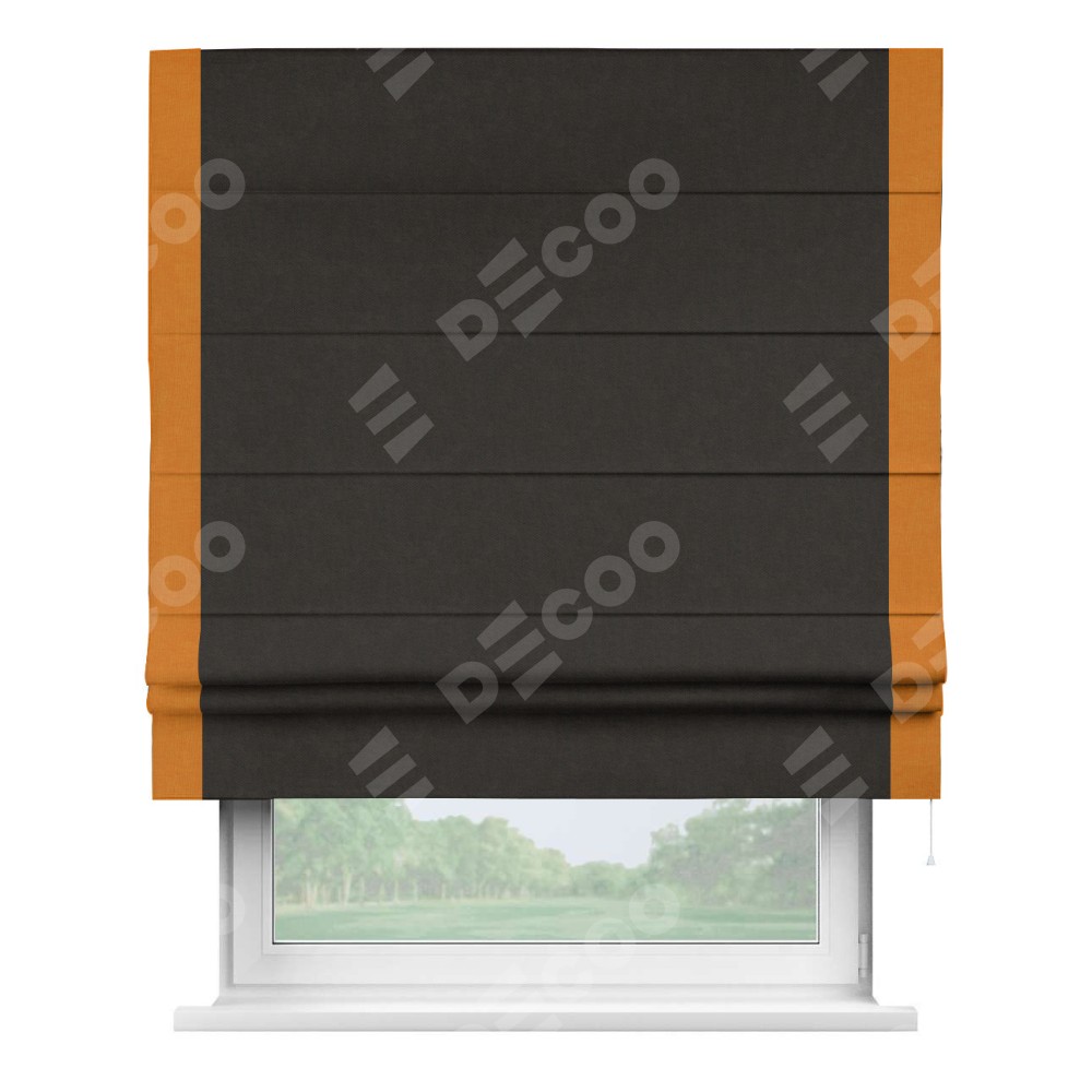 Римская штора «Кортин» для проема, канвас тёмно-коричневый, с кантом Стрим Дуо