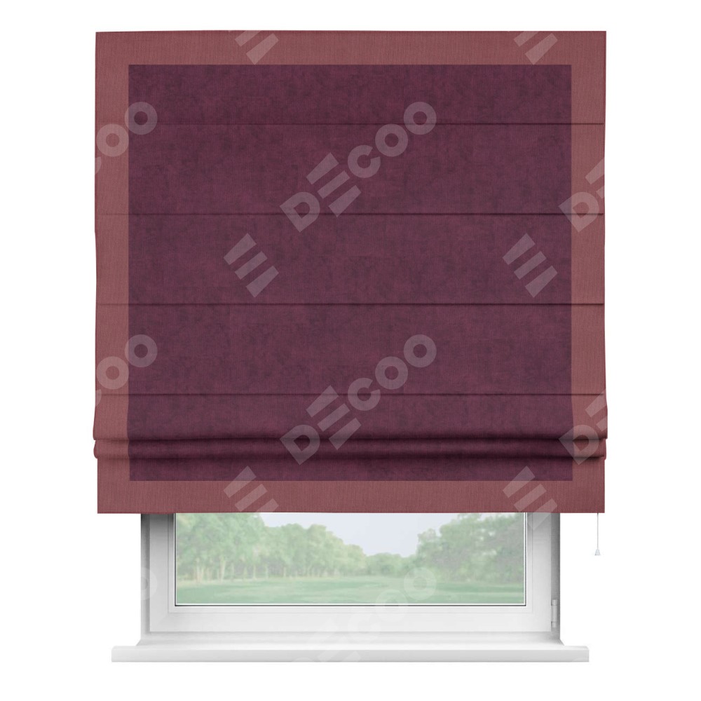 Римская штора «Кортин» для проема, канвас фиолетовый, с кантом Чесс