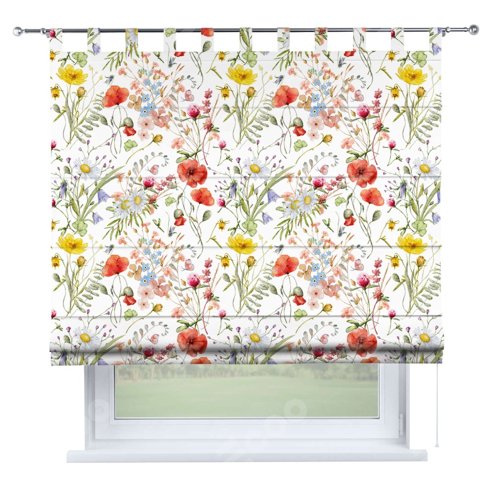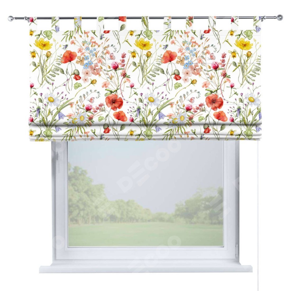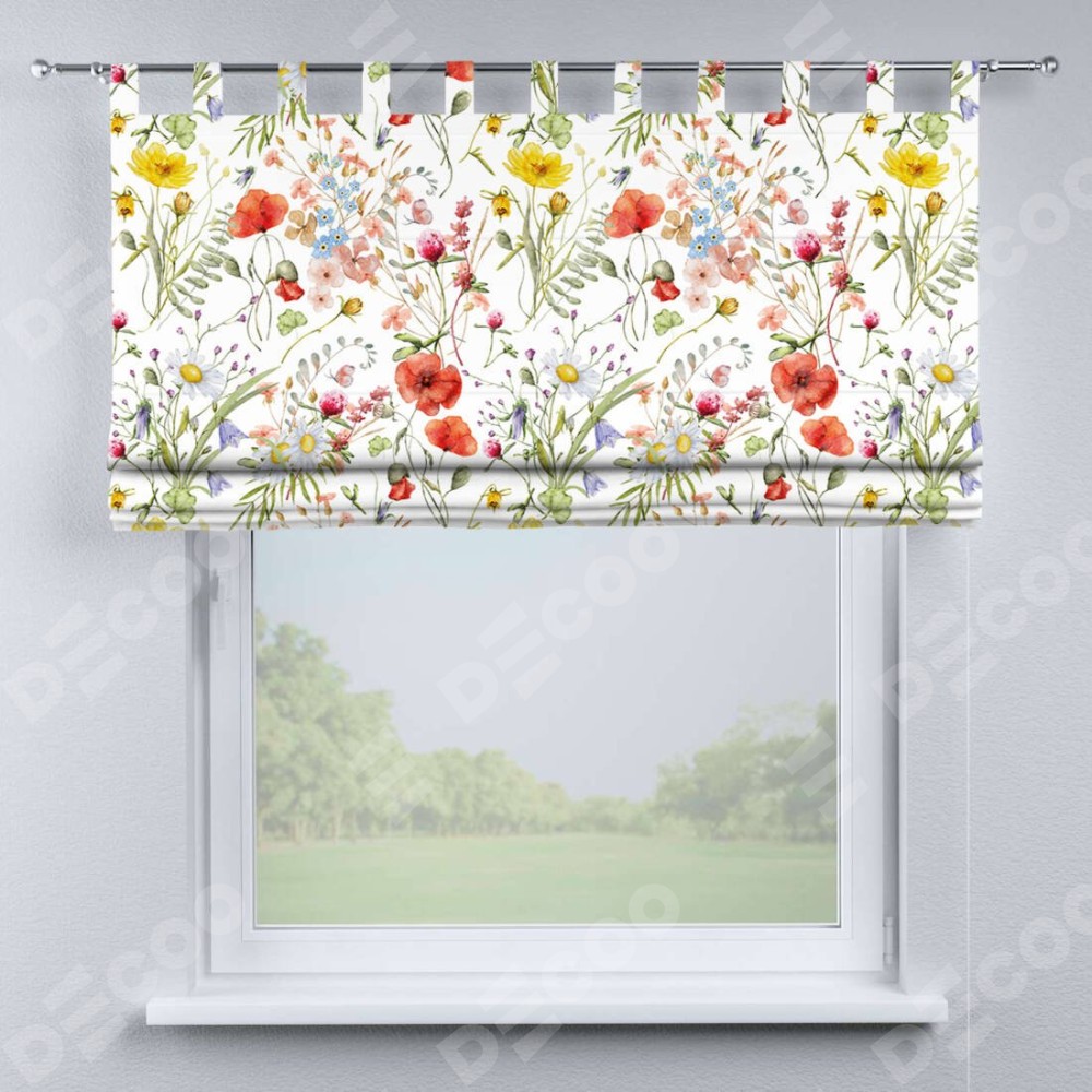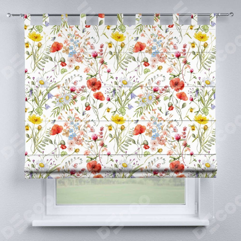 Римская штора «Кортин» на петлях «Полевые маки» предоставлена в следующих характеристиках: