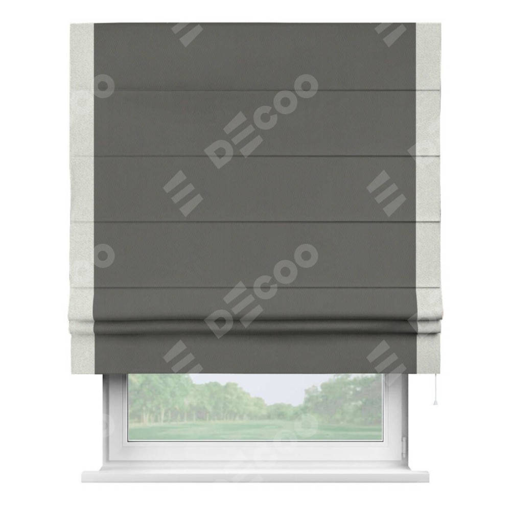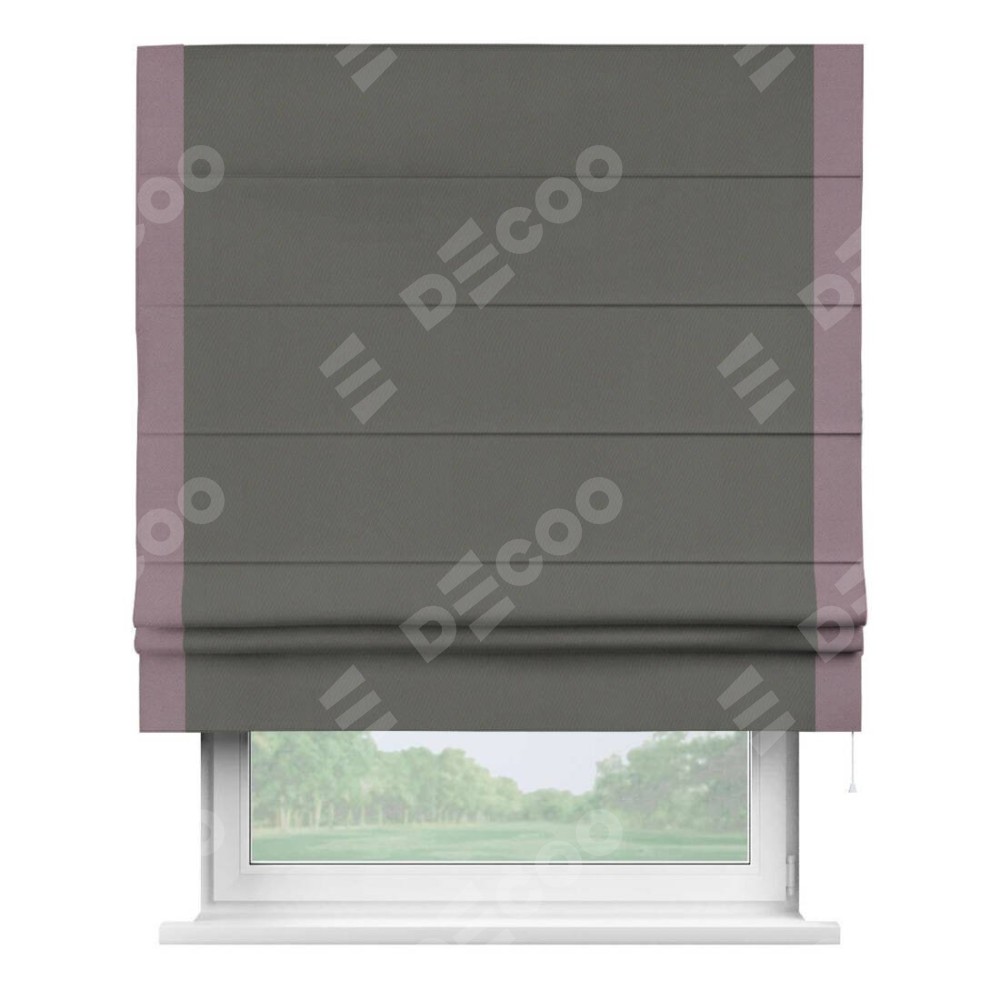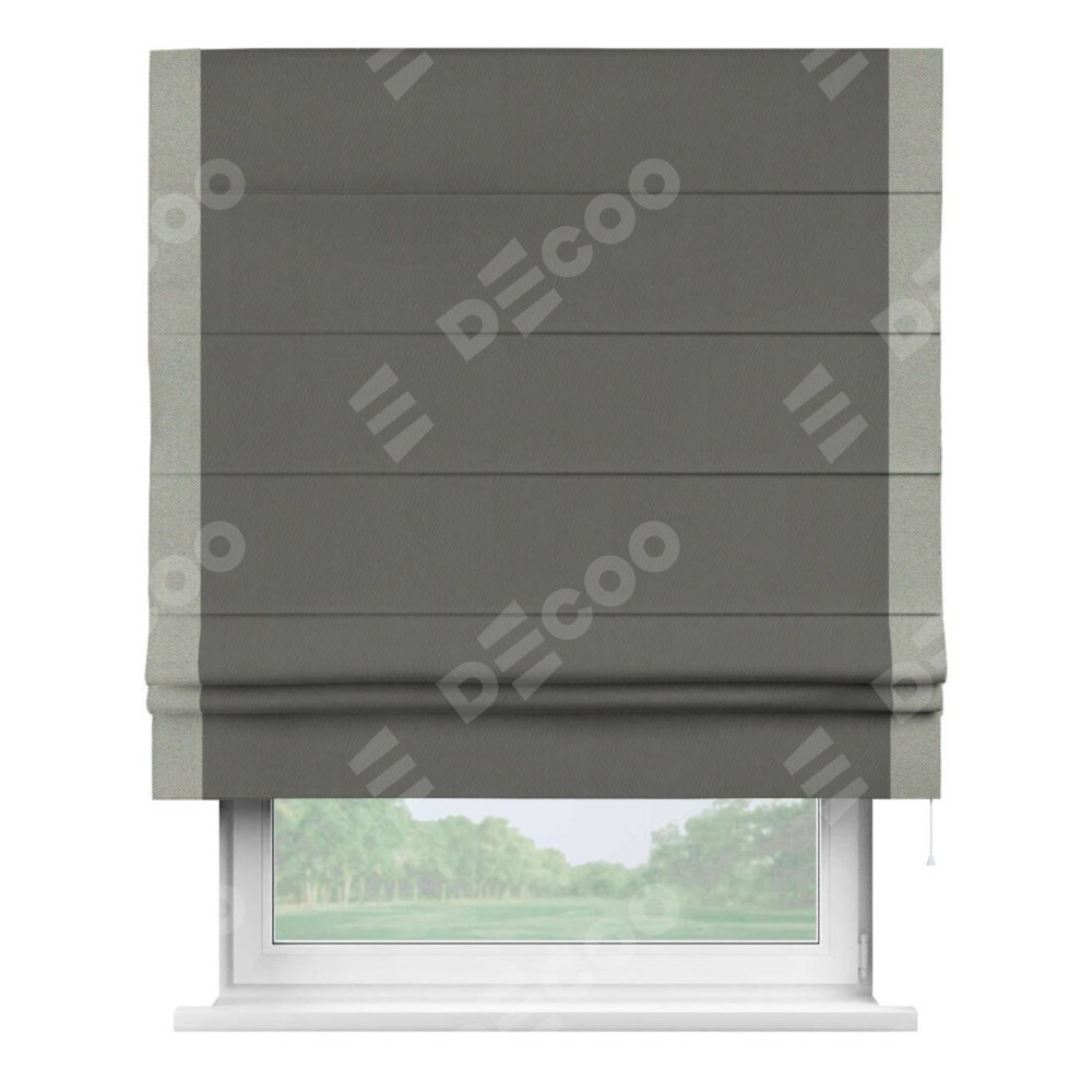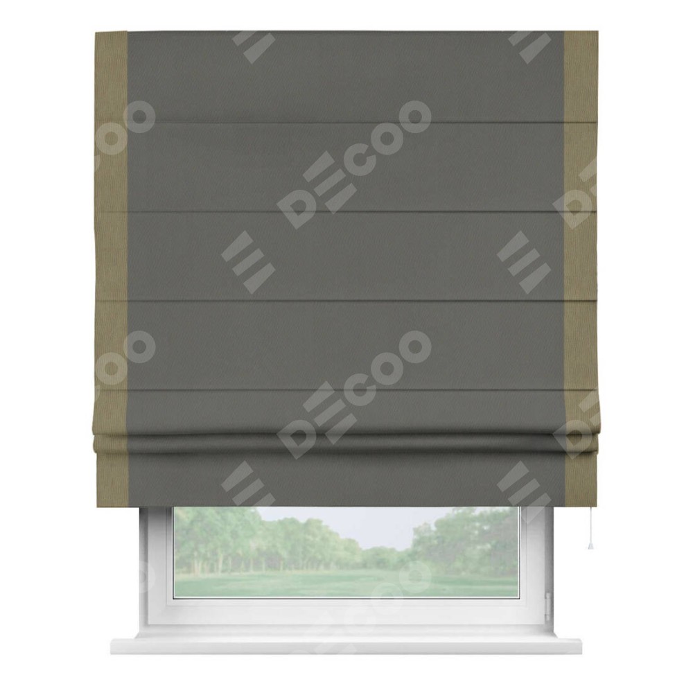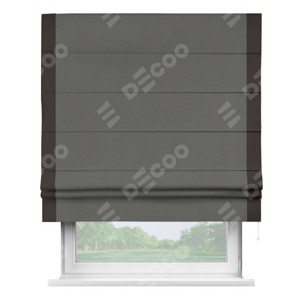 Римская штора «Кортин» для проема, блэкаут однотонный тёмно-серый с кантом Стрим Дуо