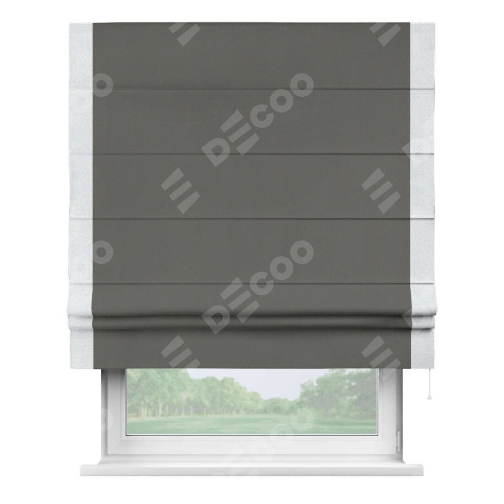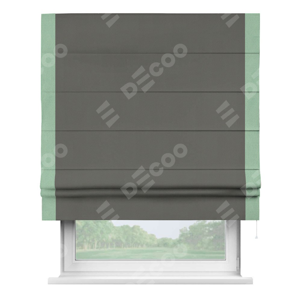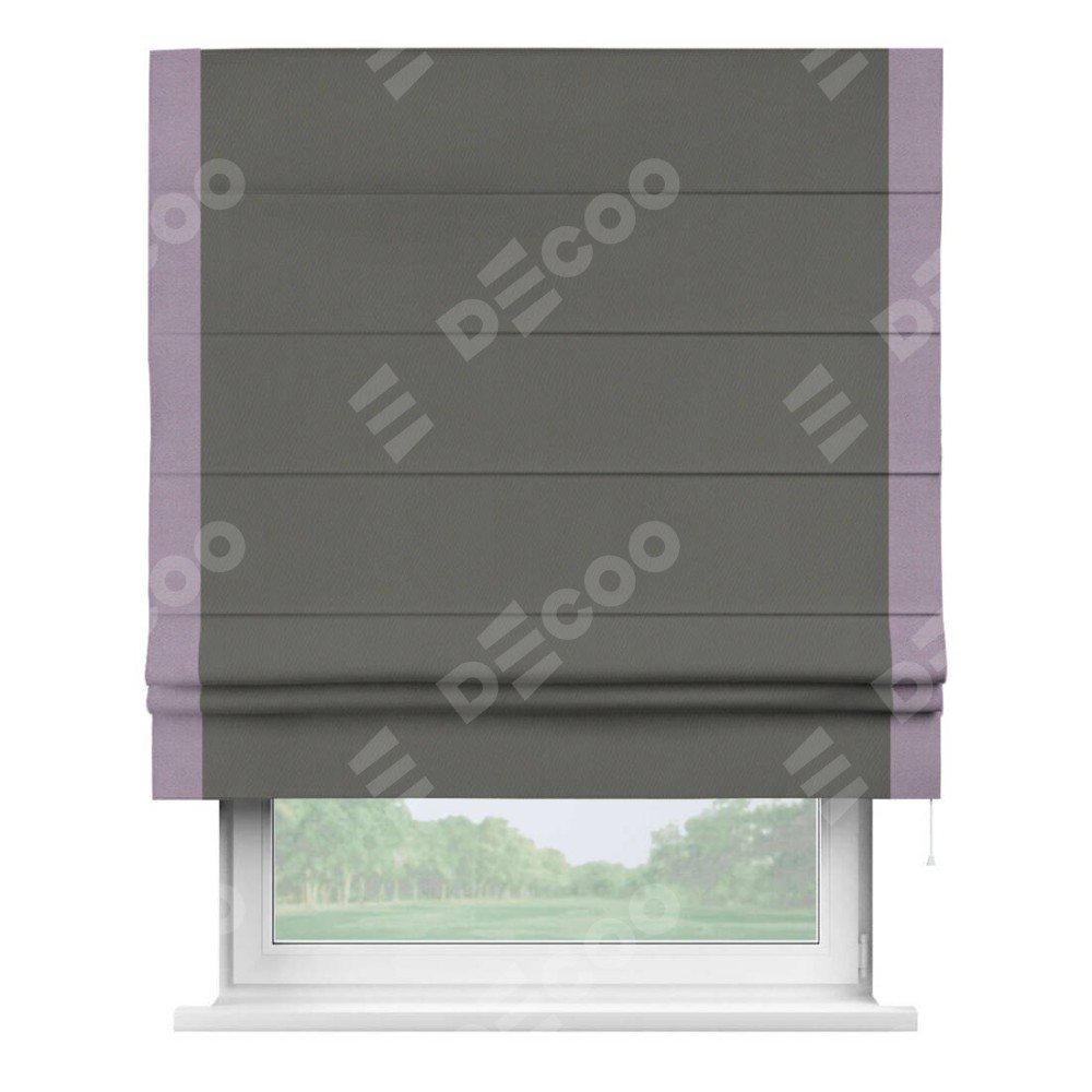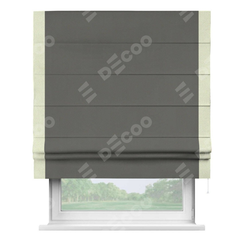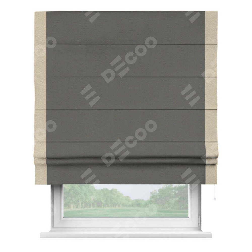Римская штора «Кортин» для проема, блэкаут однотонный тёмно-серый с кантом Стрим Дуо