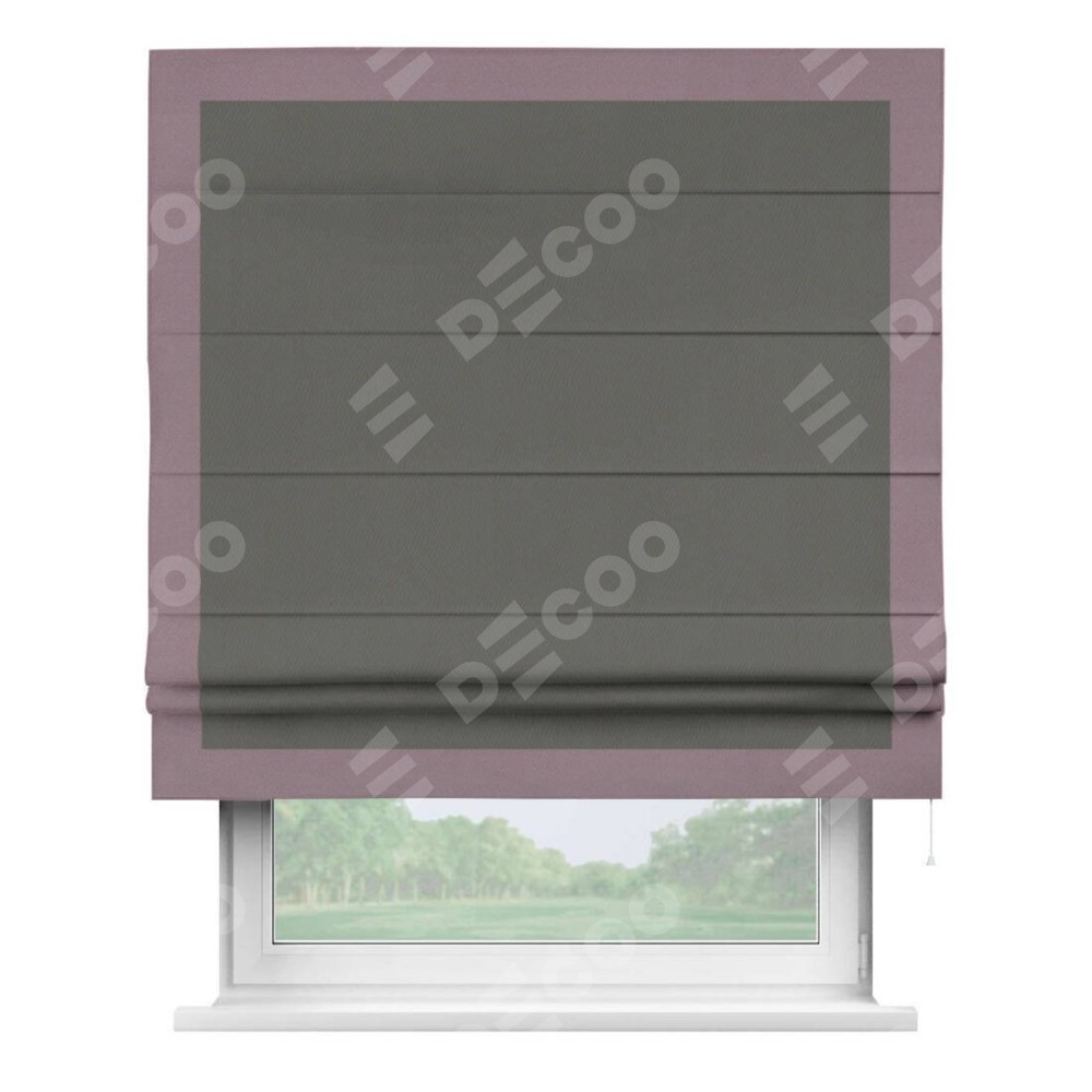 Римская штора «Кортин» для проема, блэкаут однотонный тёмно-серый с кантом Чесс