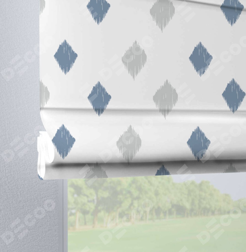 Римская штора «Кортин» на петлях «Икат ромбики» отлично подойдёт для интерьера: в кухню, в спальню и на балкон.