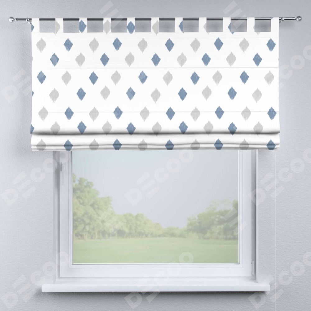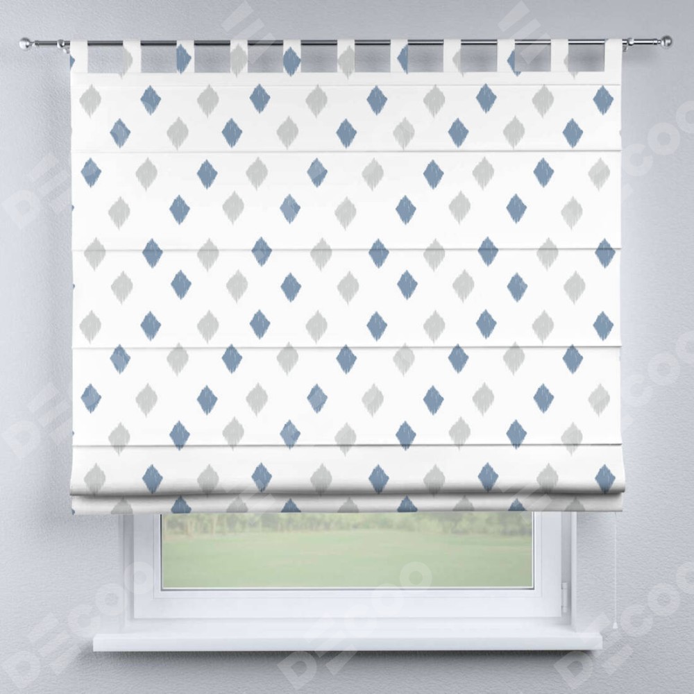 Римская штора «Кортин» на петлях «Икат ромбики» доступна к заказу по по вашим размерам. Рабочий артикул: 28162. Стоимость заказа будет зависеть от размерных характеристик и начинается от 5 232 руб. В интернет-магазине Decoo вы можете купить товар в любых размерных вариациях.