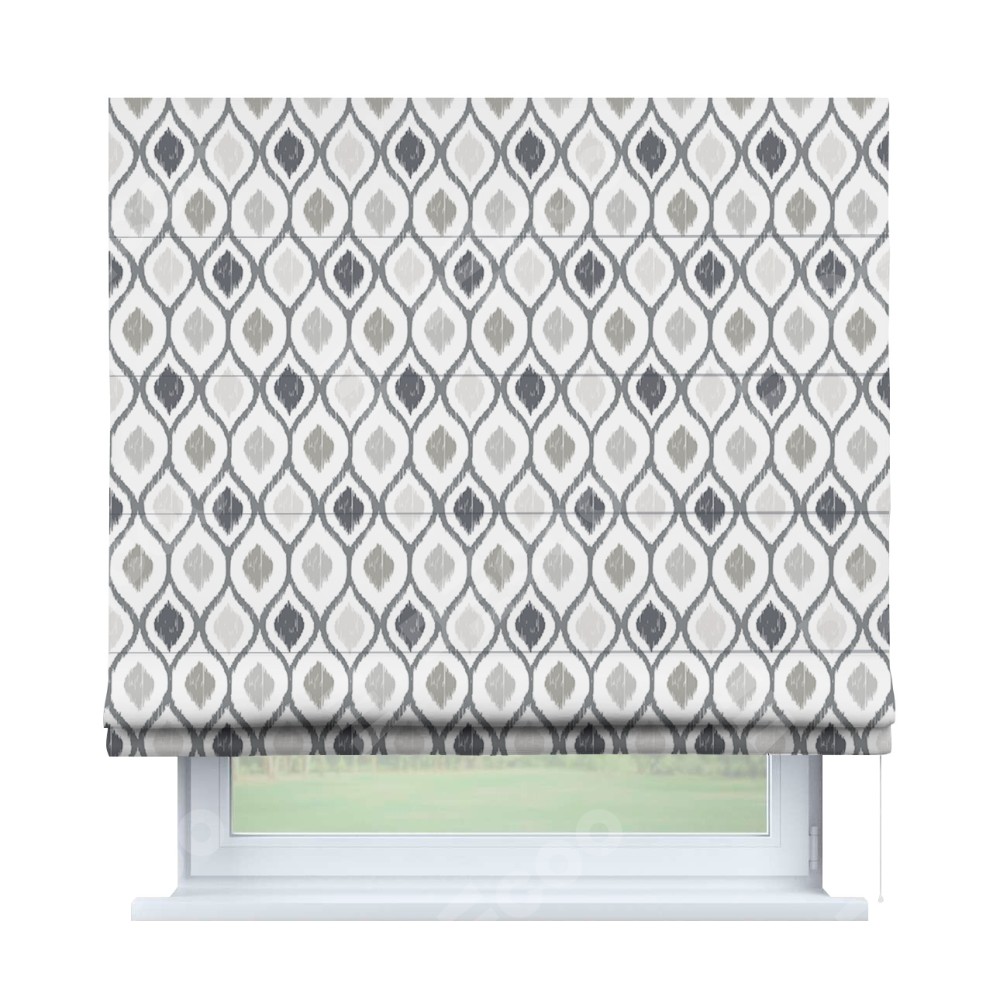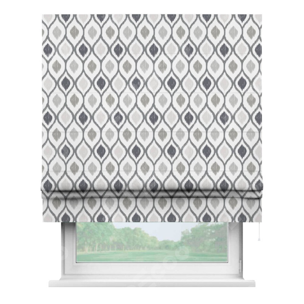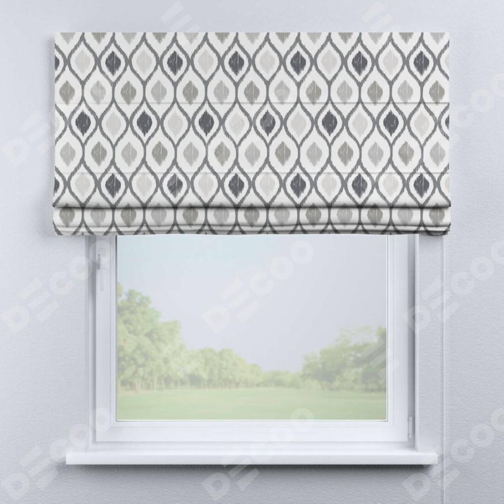 Римская штора «Кортин» для проема «Мечта востока серый» отлично подойдёт для интерьера: в спальню, в гостиную и на балкон.