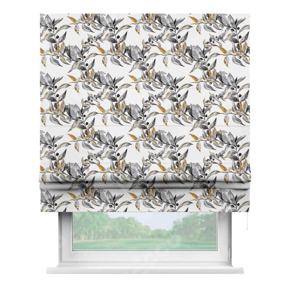 Классическая римская штора производителя «Cortin», пошита из ткани блэкаут с нанесением сублимационной печати «Оливковое дерево». Имеет универсальный механизм и подходит для монтажа: на потолок, на стену и в нишу.