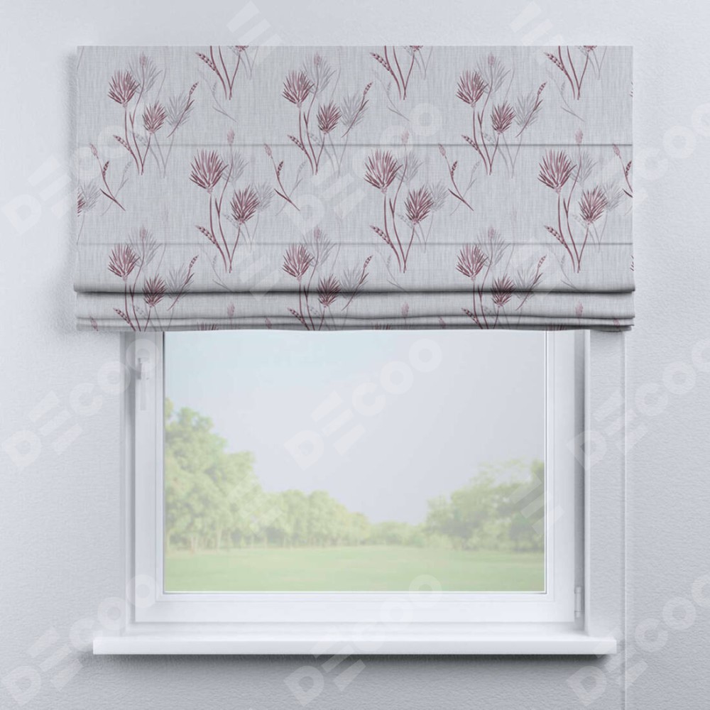 Римская штора «Кортин» для проема «Полевые травы серый» отлично подойдёт для интерьера: в кухню, на балкон и в спальню.