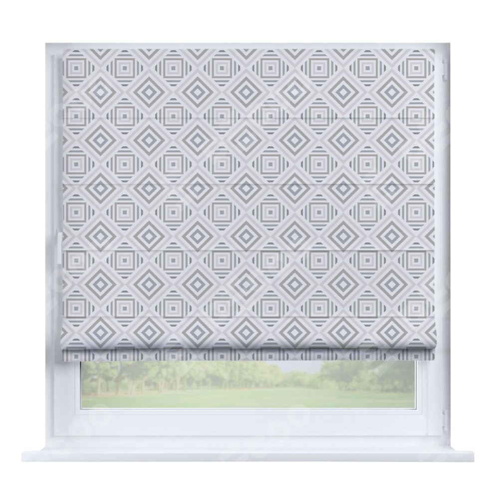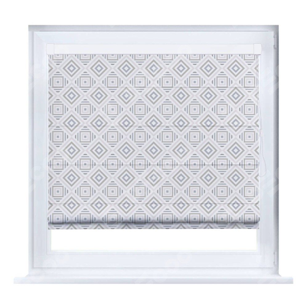 Римская штора производителя «Cortin», устанавливается на створку окна, пошита из ткани блэкаут с нанесением сублимационной печати «Техно серый». Штора шьётся по индивидуальным размерам, для данного типа римской шторы возможная ширина от 35 до 150 см., высота до 250 см.