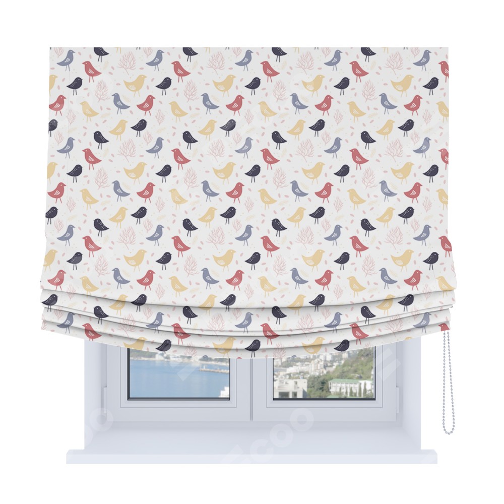 Римская штора Soft с мягкими складками, «Цветные птички»