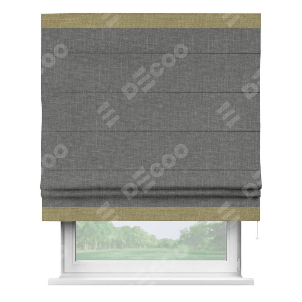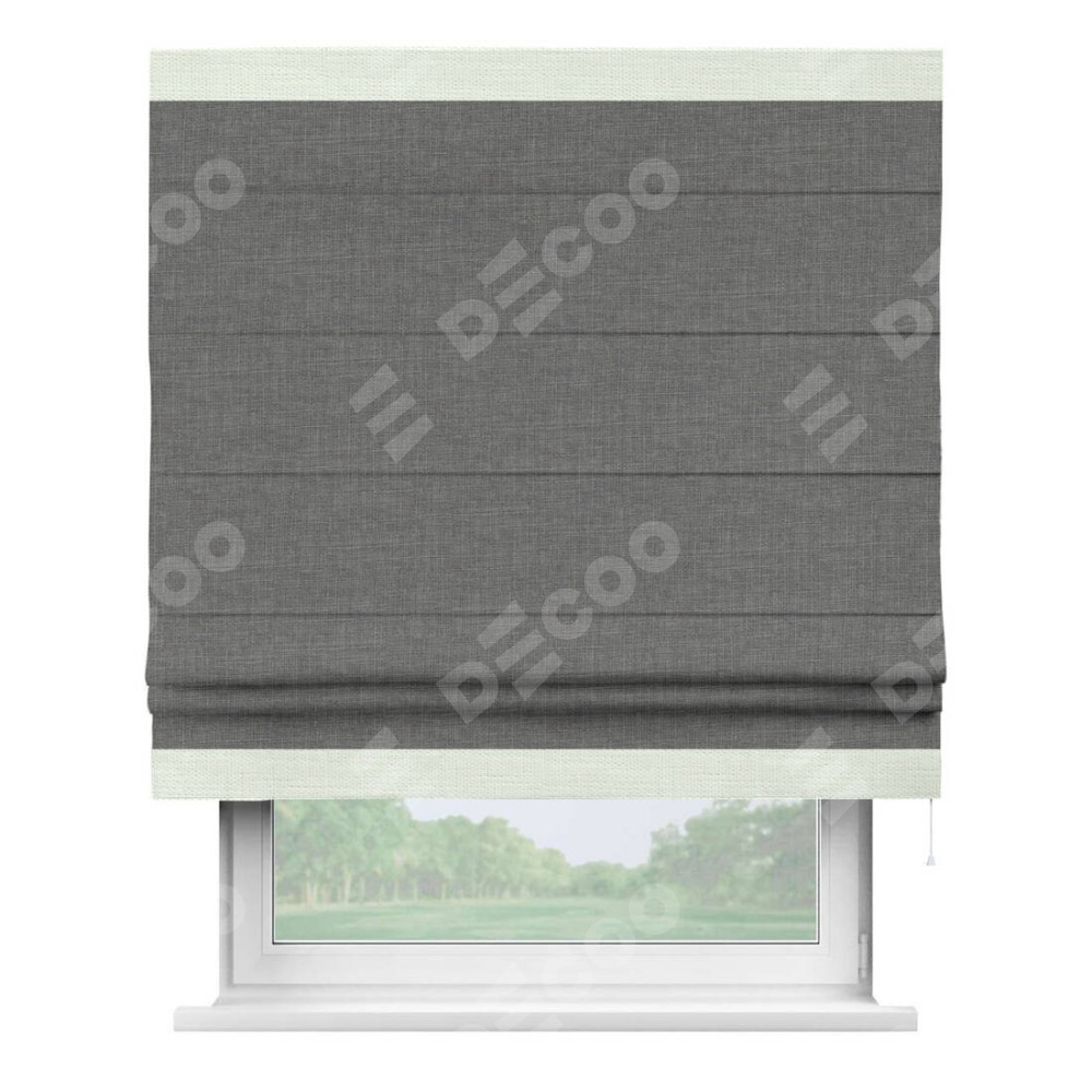 Римская штора «Кортин» с кантом Горизонт, для проема, лён тёмно-серый