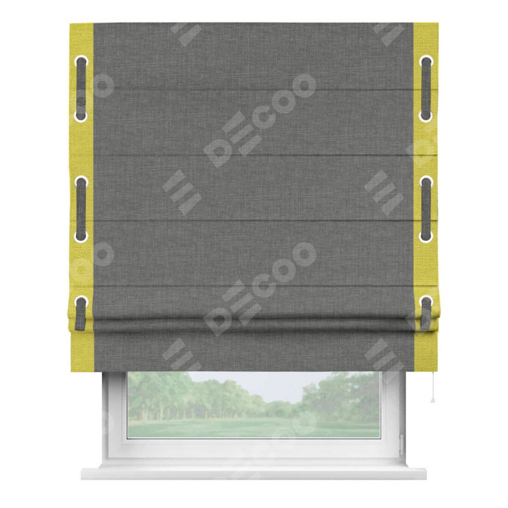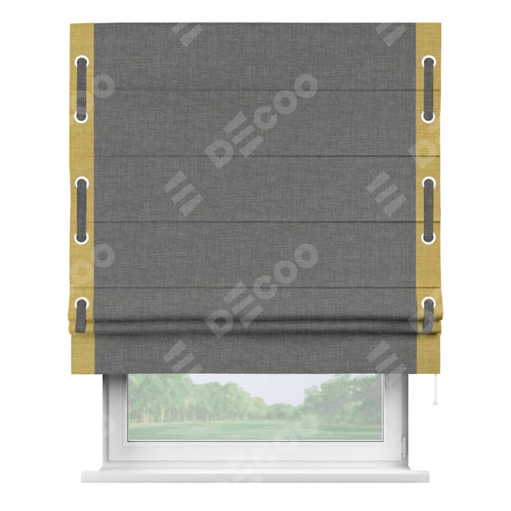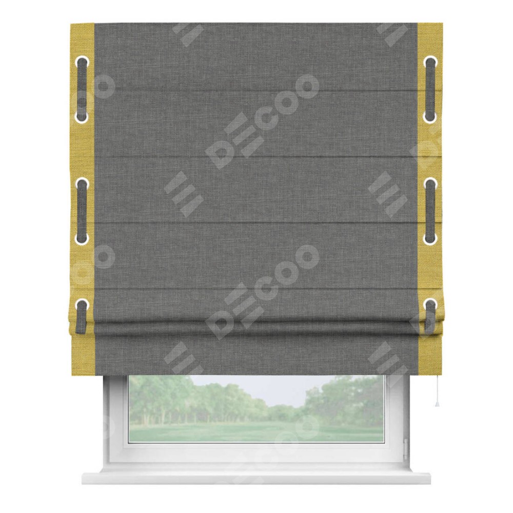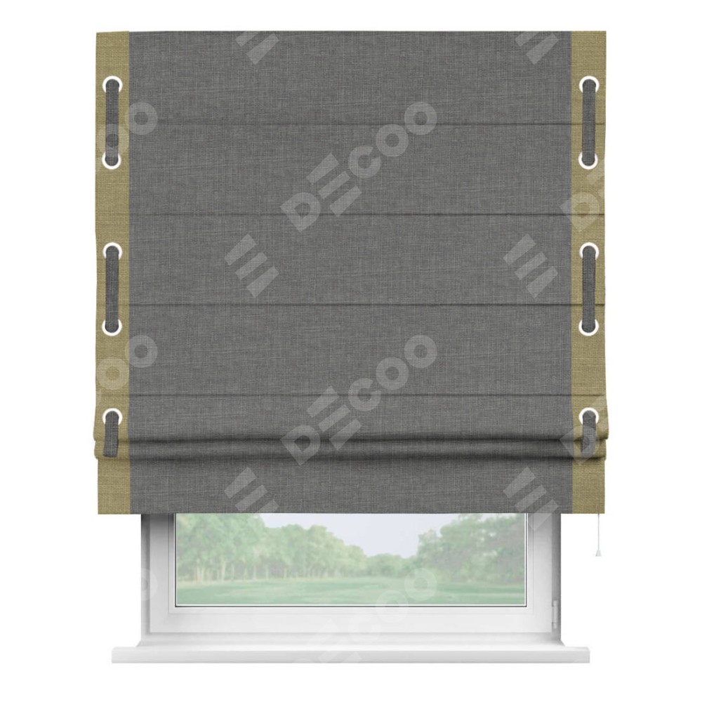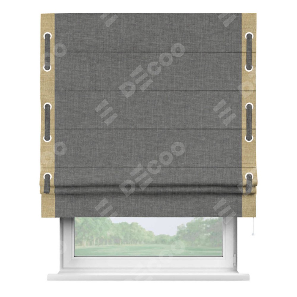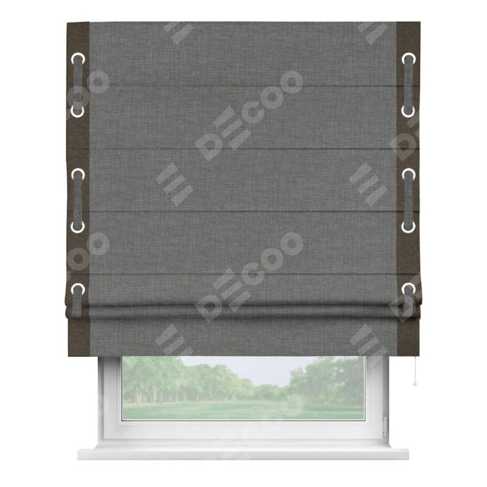 Римская штора «Кортин» с кантом Стрим Дуо (люверсы с пояском), для проема, лён тёмно-серый