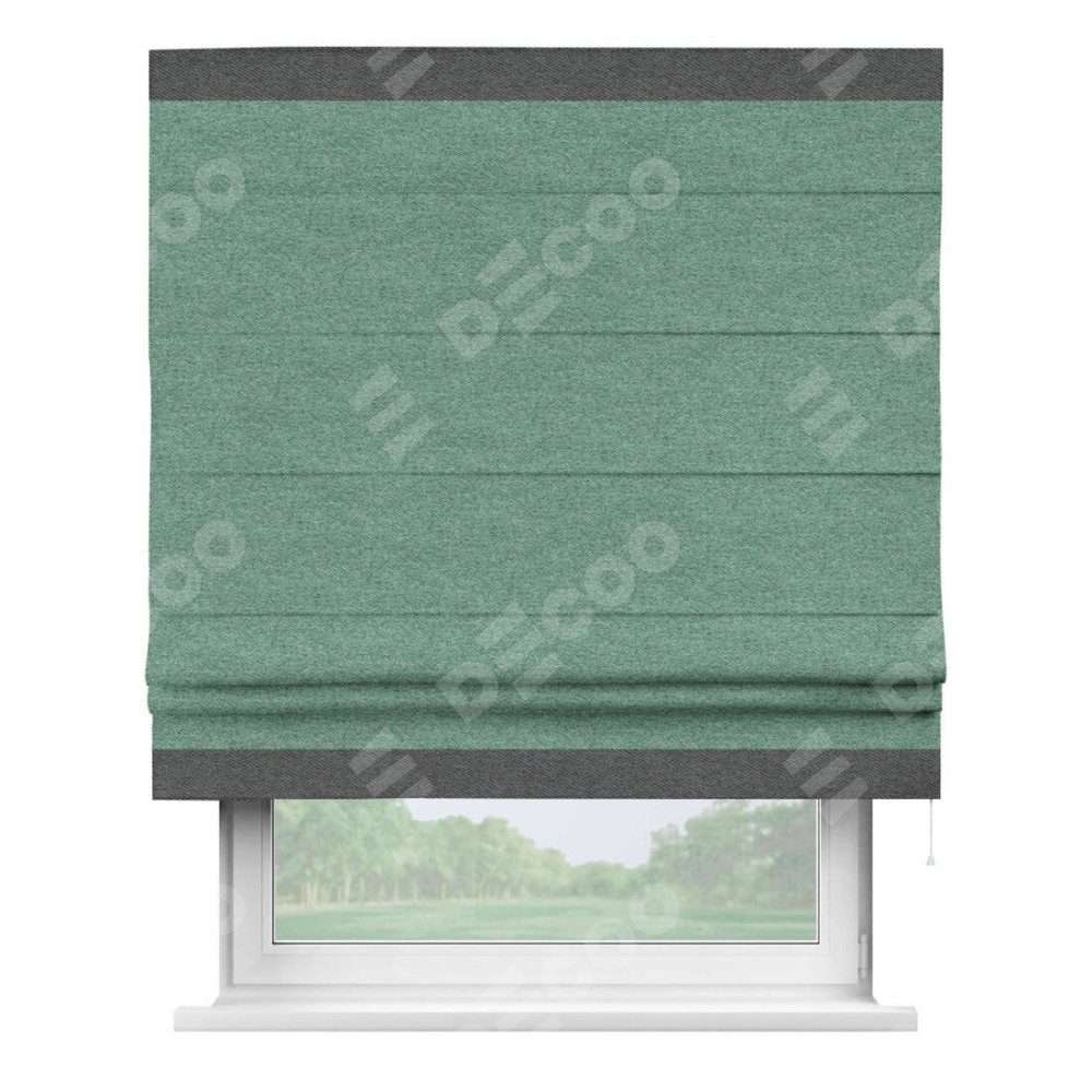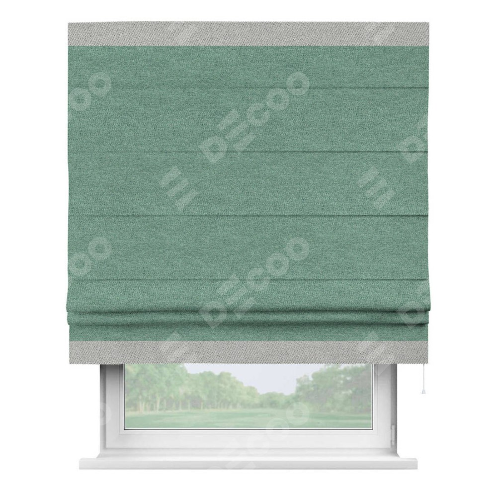 Римская штора «Кортин» с кантом Горизонт, для проема, твид блэкаут бирюзовый