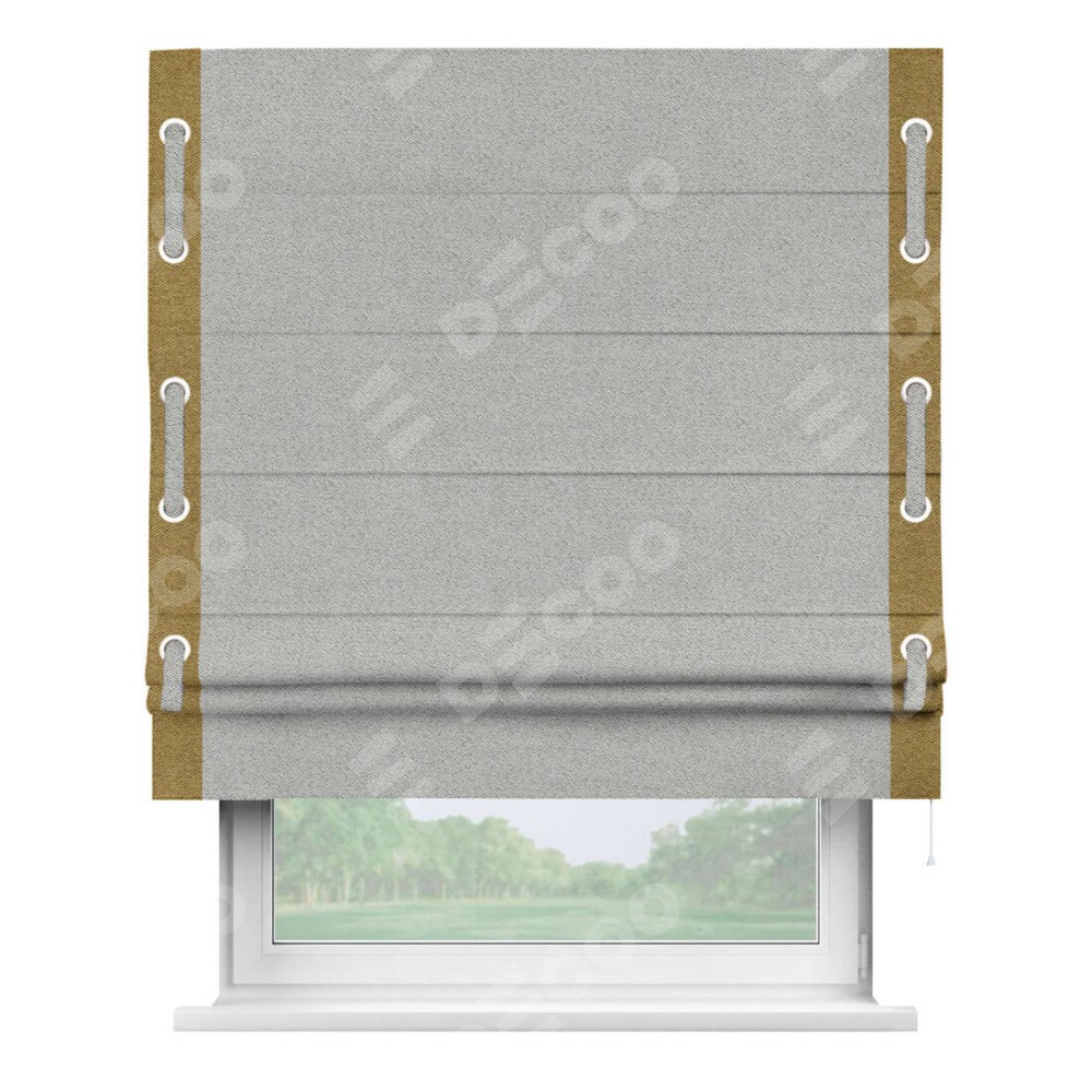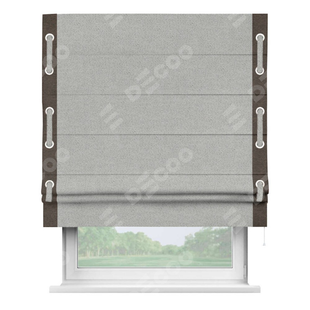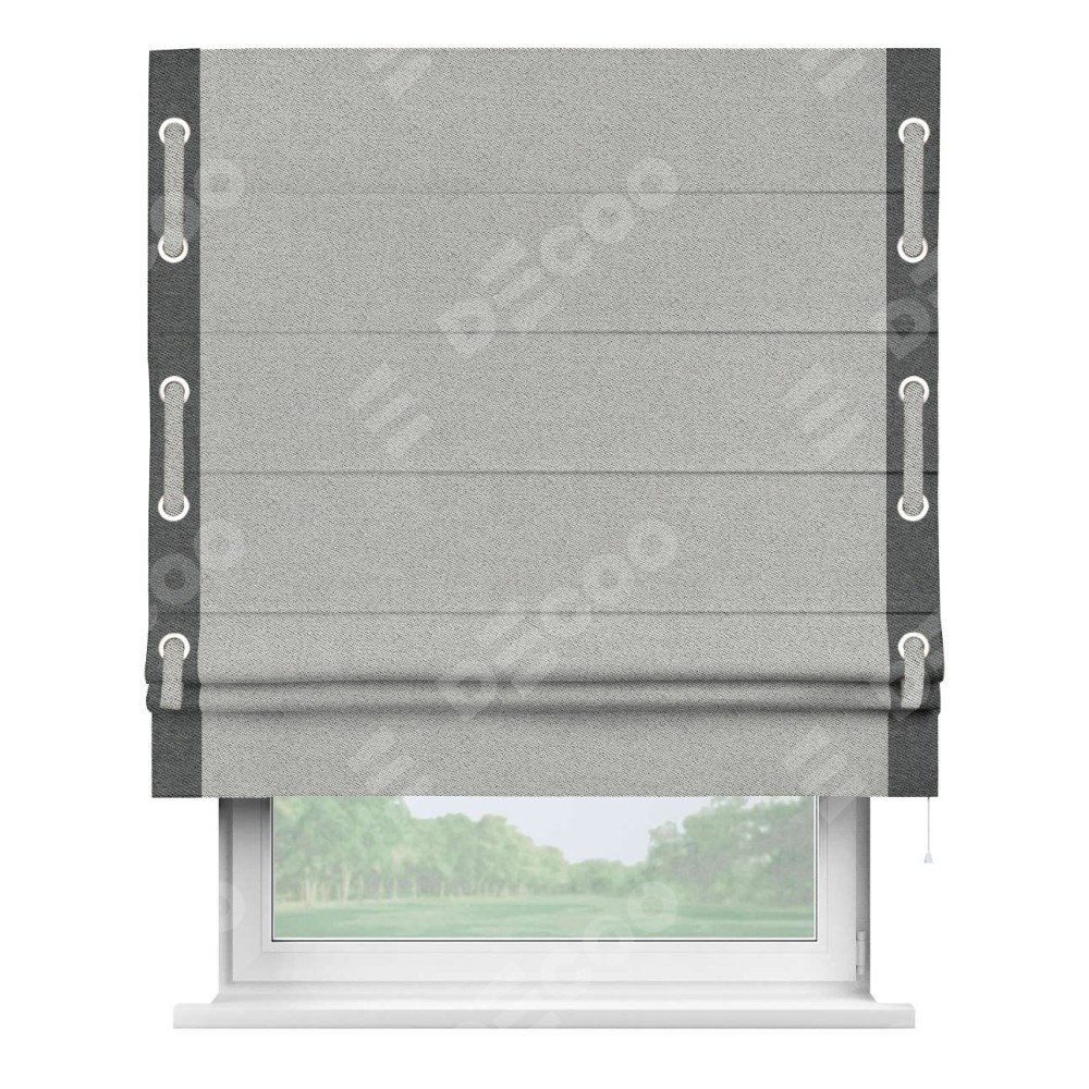 Римская штора «Кортин» для проема, твид блэкаут светло-серый, с кантом Стрим Дуо (люверсы с пояском)