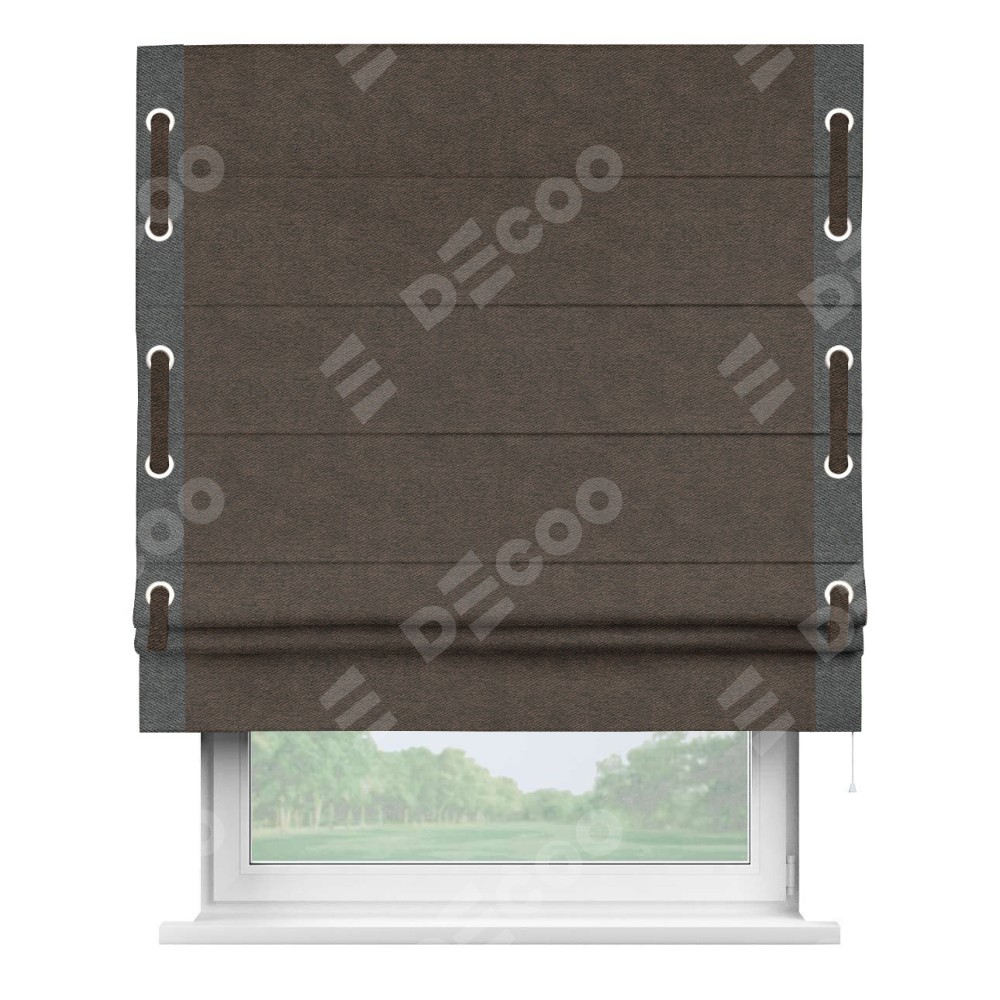Римская штора «Кортин» для проема, твид блэкаут тёмно-коричневый, с кантом Стрим Дуо (люверсы с пояском)