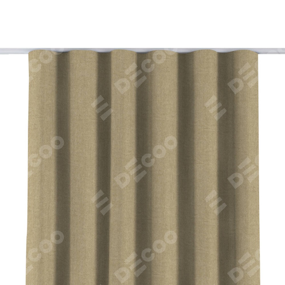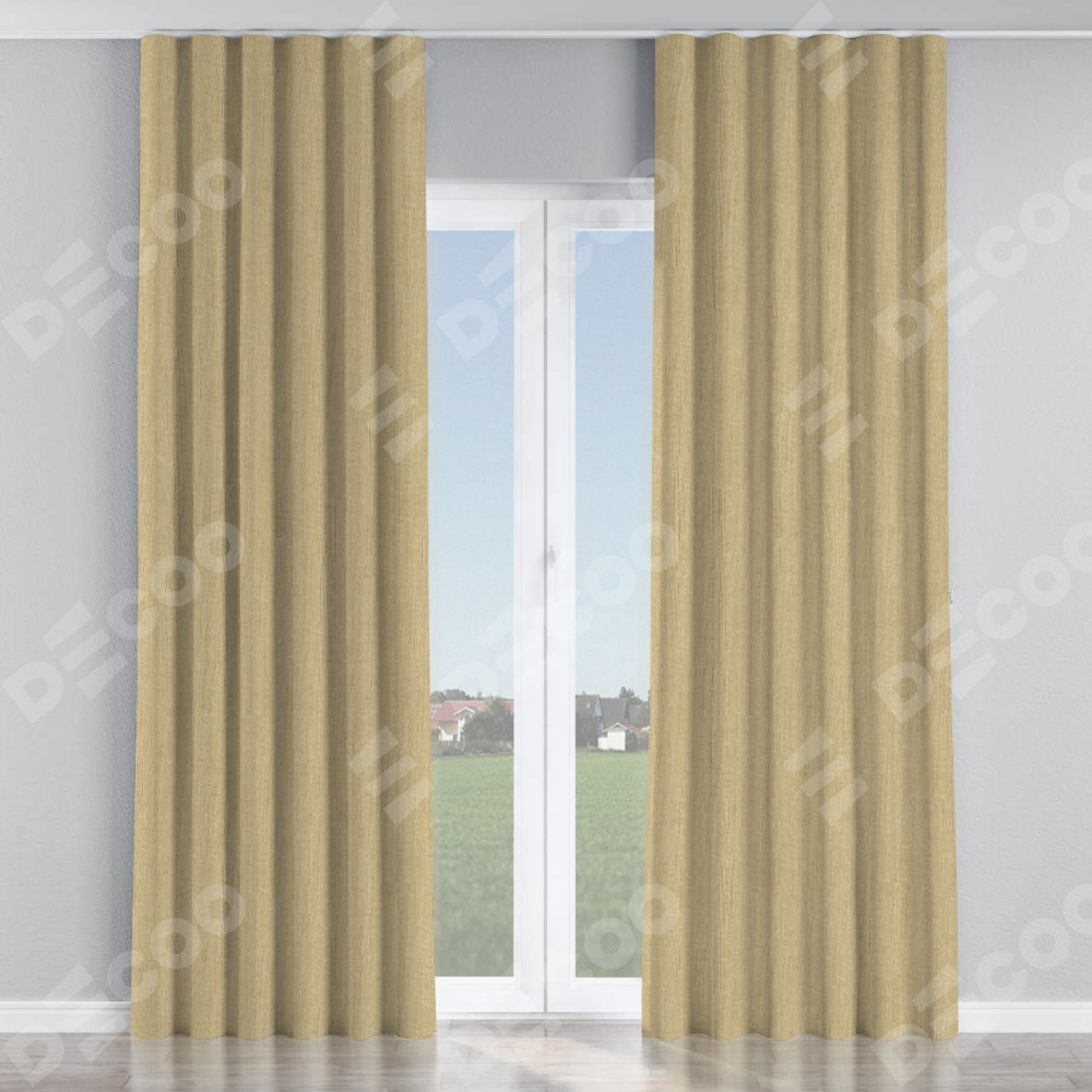 Комплект прямых штор, от производителя «Cortin», пошиты из ткани лён димаут песочный, артикул ткани 16256. С изнаночной стороны в верхней части штор пристрачивается шторная лента с декоративными складками «Волна». Для создания элегантных складок прямые шторы шьются по стандарту с коэффициентом 1:2 (на 100 см. ширины проёма 200 см. ширины ткани).