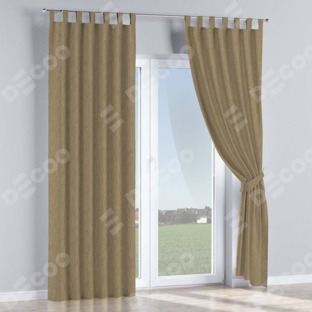 Комплект прямых штор, от производителя «Cortin», пошиты из ткани лён димаут тёмно-бежевый, артикул ткани 16261. Данная модель пошита на петлях, комплектуется на выбор круглым карнизом и подходит для монтажа на стену или потолок. Прямые шторы на петлях шьются по стандарту с коэффициентом 1/2 (на 100 см. ширины проёма 200 см. ширины ткани), отличительным преимуществом данной модели является простой способ монтажа. Достаточно повесить ее на трубу и штора готова!