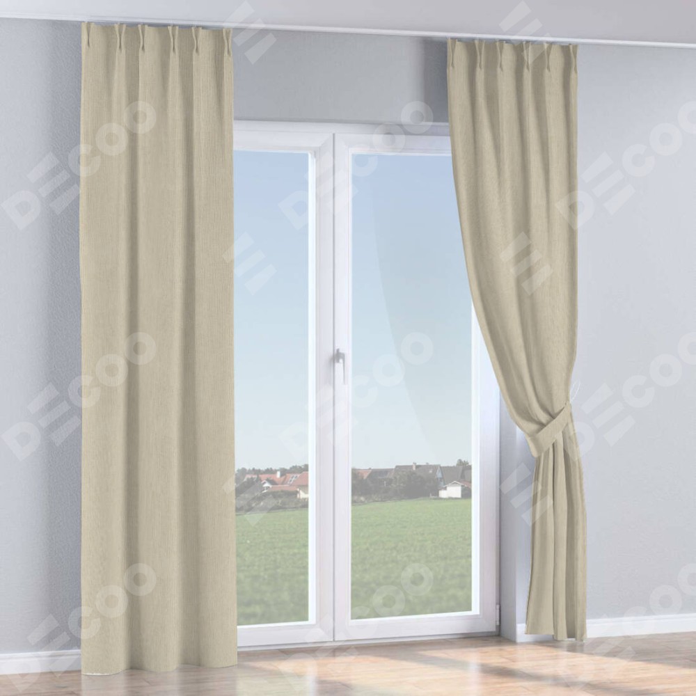 Комплект прямых штор, от производителя «Cortin», пошиты из ткани cotton блэкаут светло-бежевый, артикул ткани 71119. С изнаночной стороны в верхней части штор пристрачивается шторная лента с декоративными складками «Кустик». Для создания элегантных складок прямые шторы шьются по стандарту с коэффициентом 1:2 (на 100 см. ширины проёма 200 см. ширины ткани).
