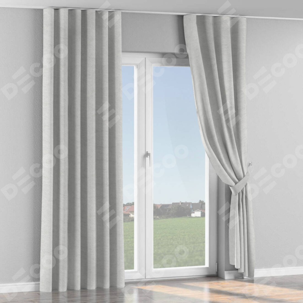 Комплект прямых штор, от производителя «Cortin», пошиты из ткани софт мрамор белый, артикул ткани 93581. С изнаночной стороны в верхней части штор пристрачивается шторная лента с декоративными складками «Волна». Для создания элегантных складок прямые шторы шьются по стандарту с коэффициентом 1:2 (на 100 см. ширины проёма 200 см. ширины ткани).