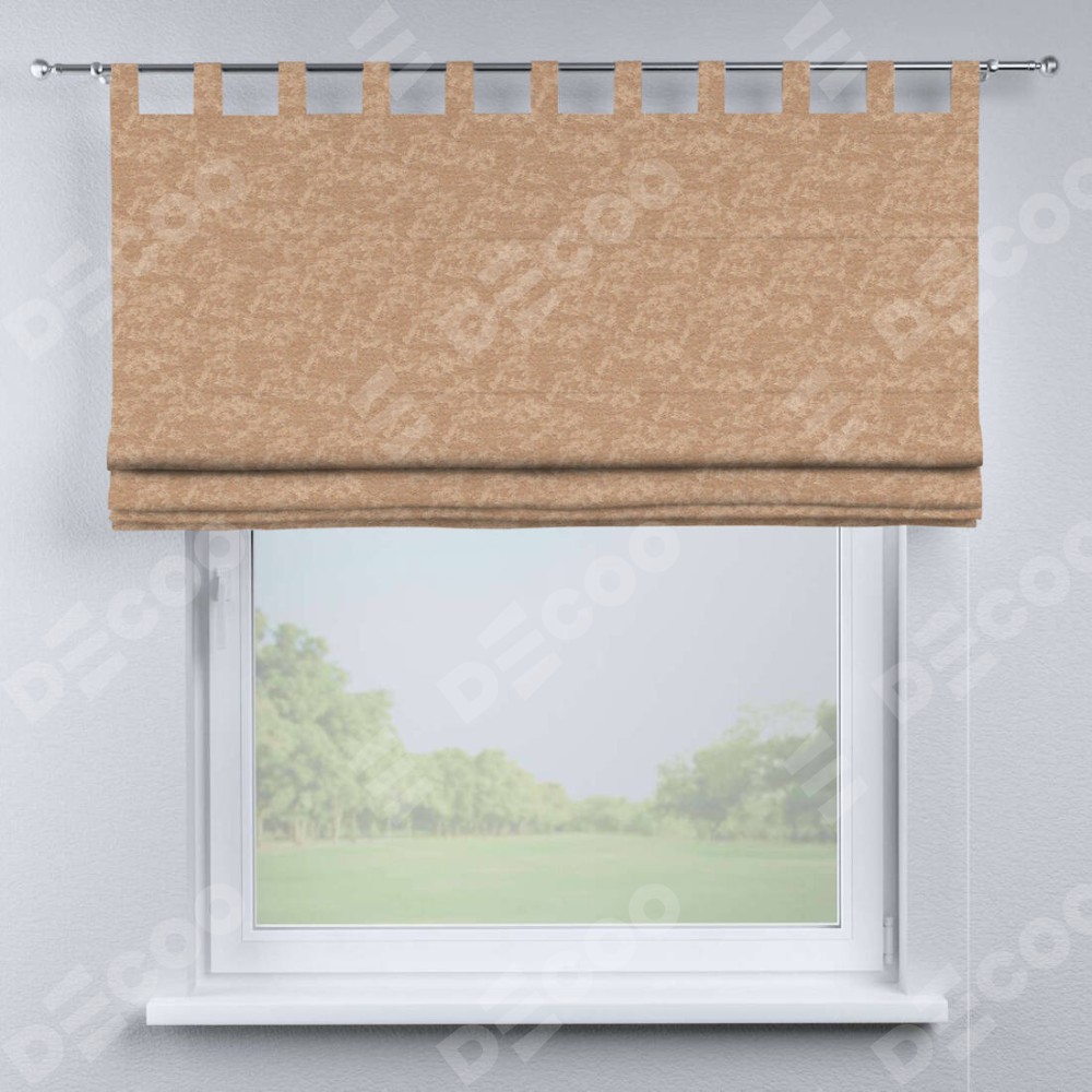 Римская штора производителя «Cortin», используется для проёма, пошита из ткани софт мрамор бронзовый, артикул ткани 93576. Данная модель пошита на петлях, комплектуется на выбор круглым карнизом и подходит для монтажа на стену. Римская штора на петлях имеет простую систему регулировки высоты, отличительным преимуществом данной модели является простой способ монтажа. Достаточно повесить ее на трубу и штора готова!